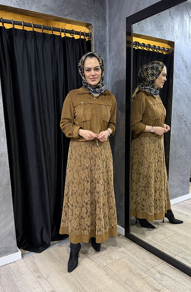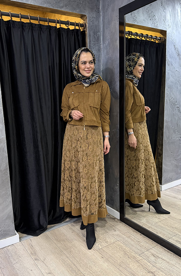 MissDalida Önü Fermuarlı Arkası Triko Cupra Ceket DARDO-TAUPE
