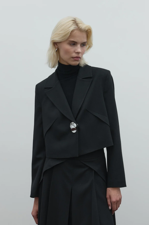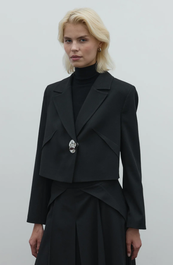Clande Kumaşı Simli Kısa Ceket SİYAH