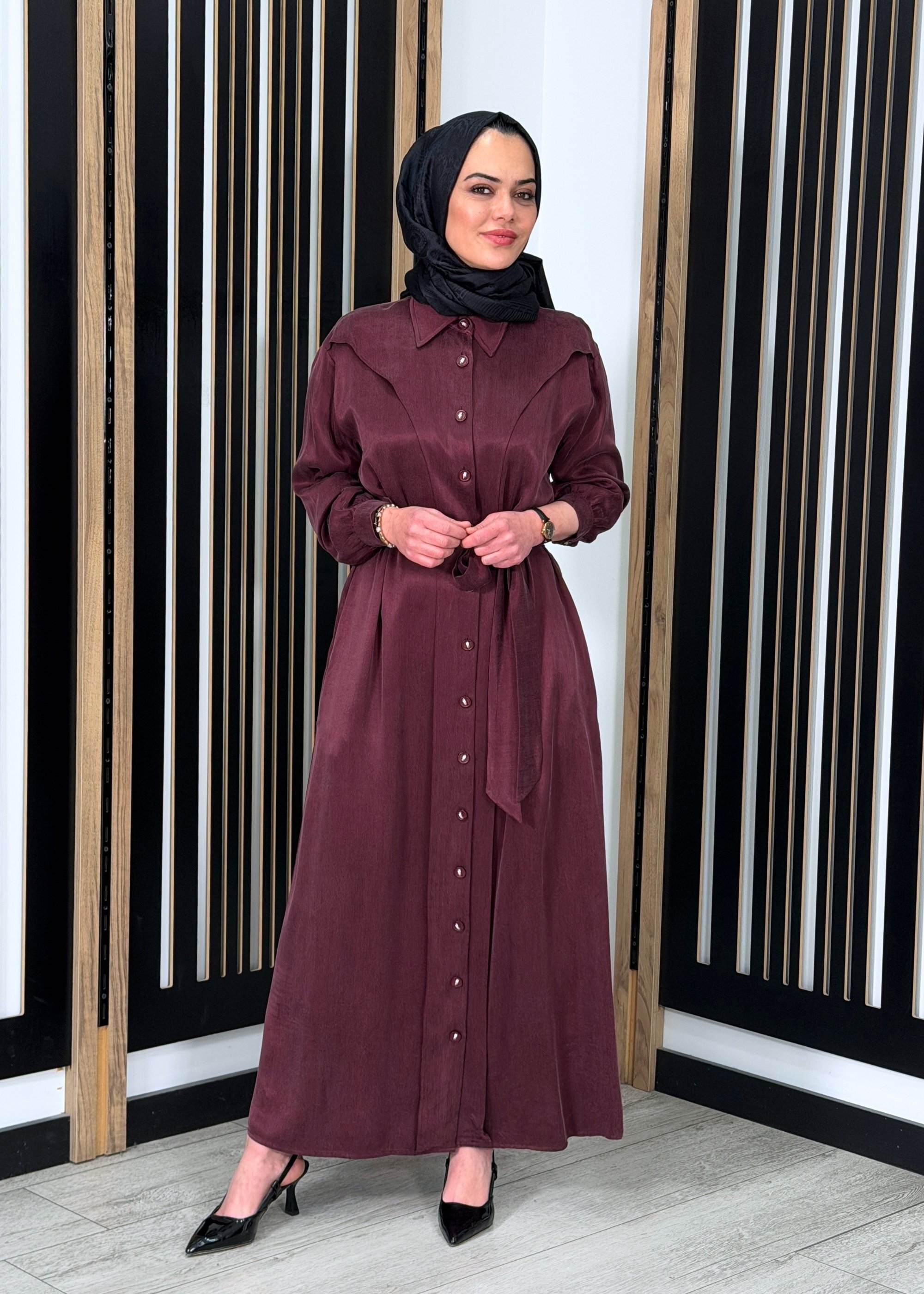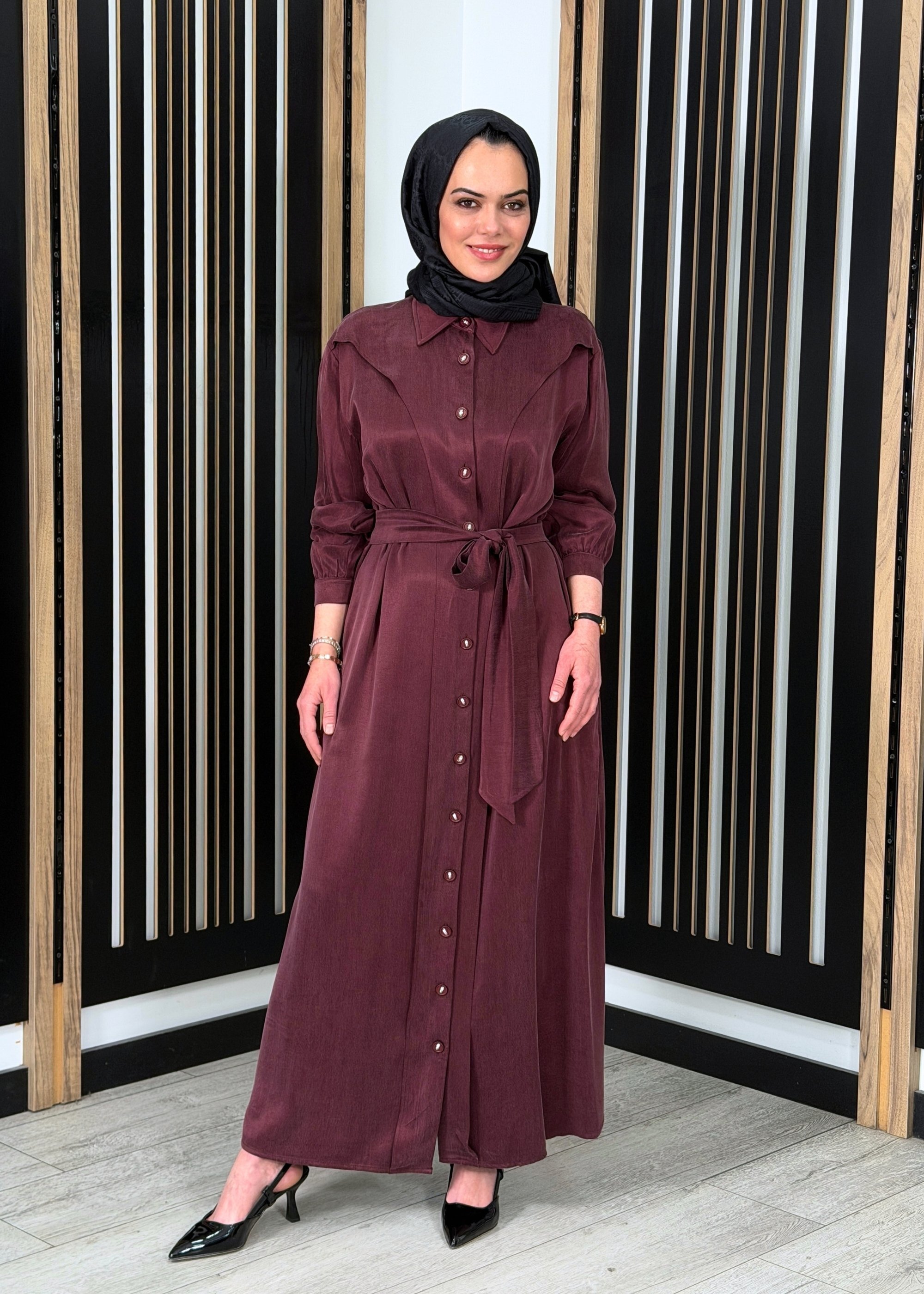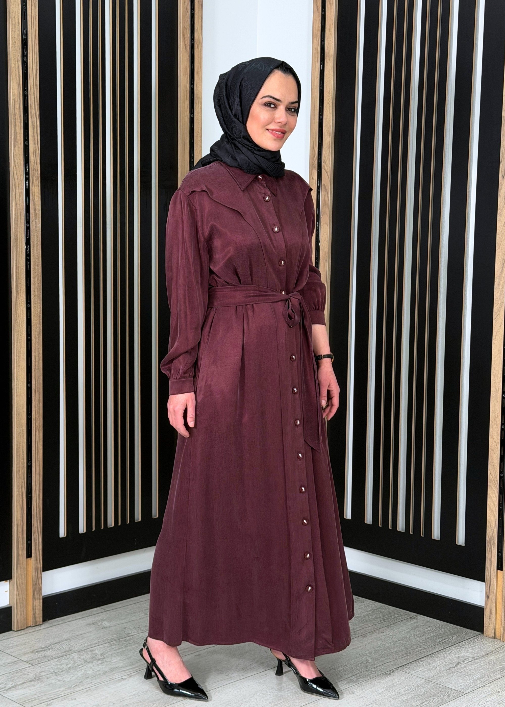 Clande Omuzu Parça Detaylı Kuşaklı Elbise BORDO - 1Clande Omuzu Parça Detaylı Kuşaklı Elbise BORDO - 2Clande Omuzu Parça Detaylı Kuşaklı Elbise BORDO - 3