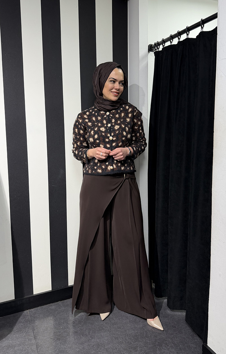 Clande Önü Kapaklı Tokalı Pantolon KAHVE