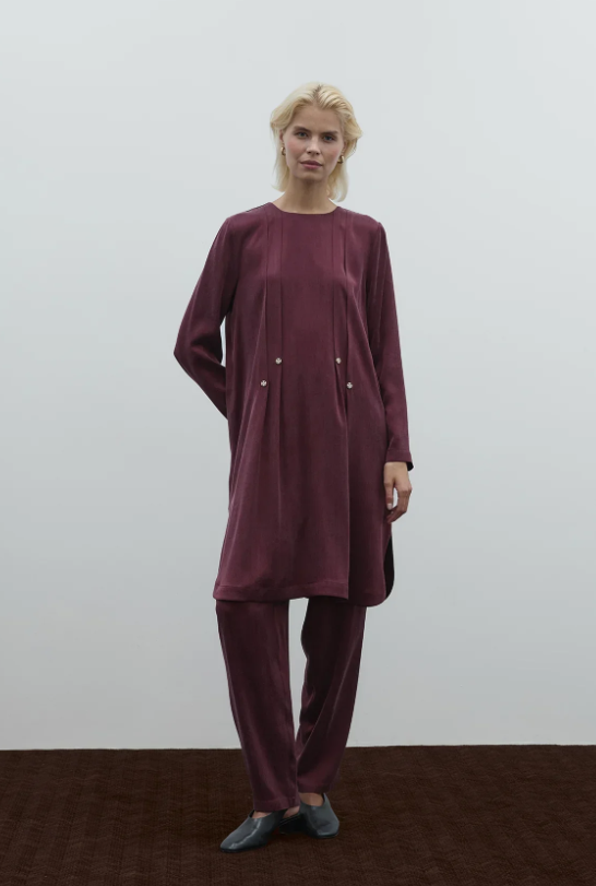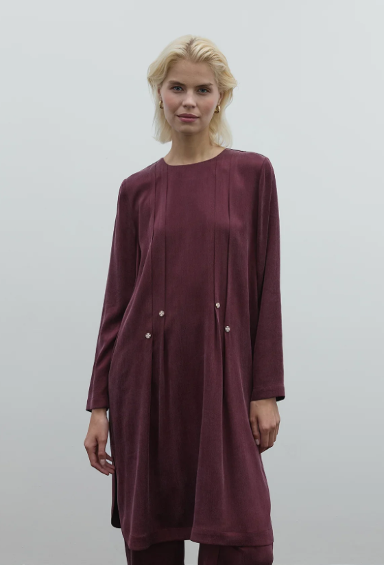 Clande Taş Detaylı Cupra Uzun Tunik BORDO