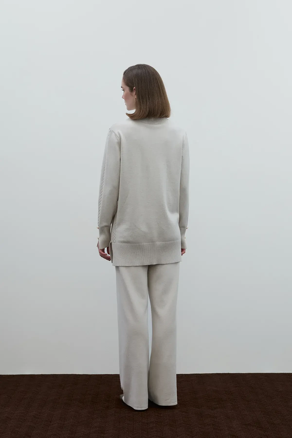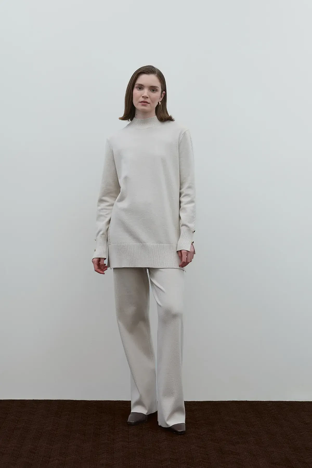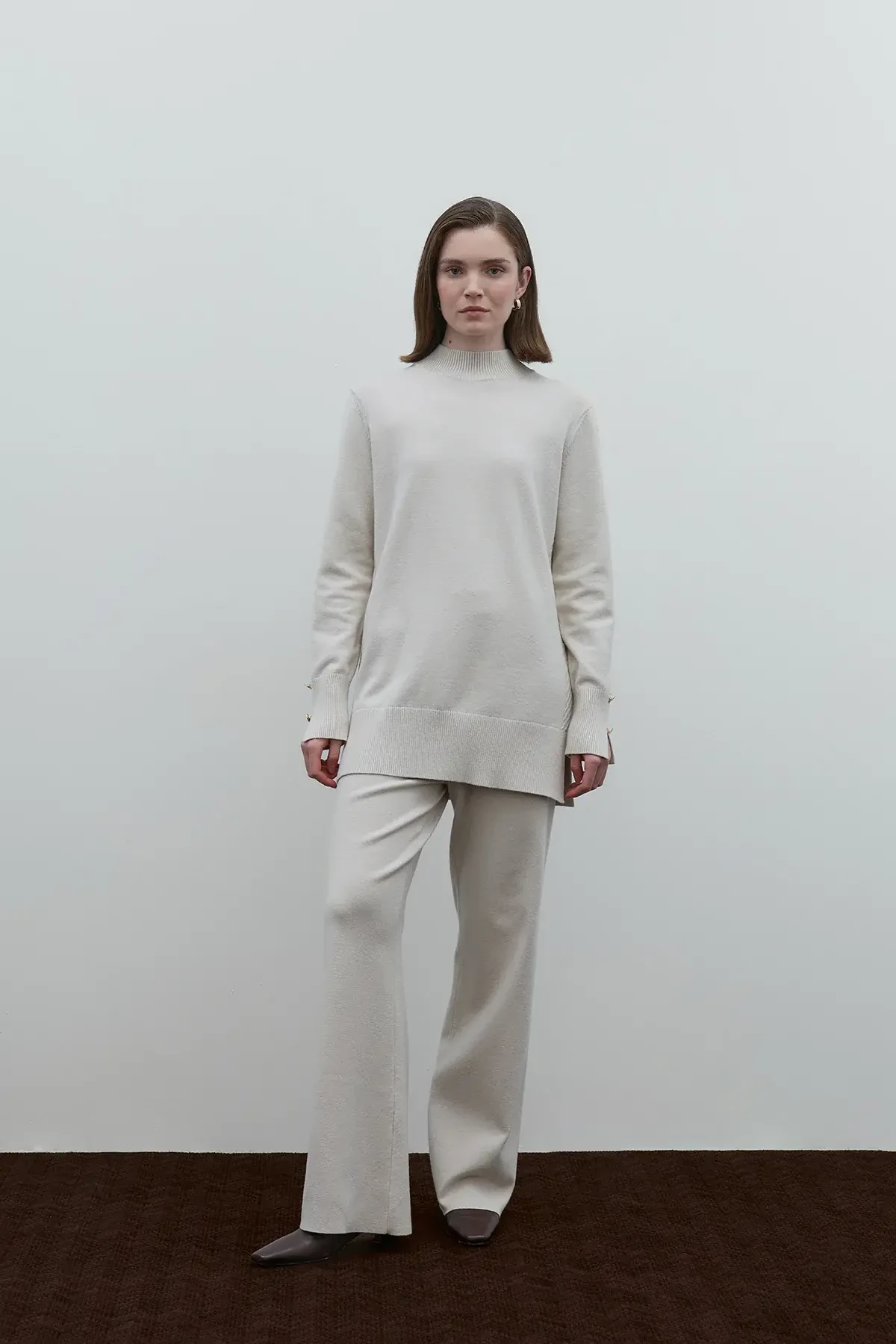 Miss Dalida Yanları Beyaz Bol Paça Pantolon MİNK