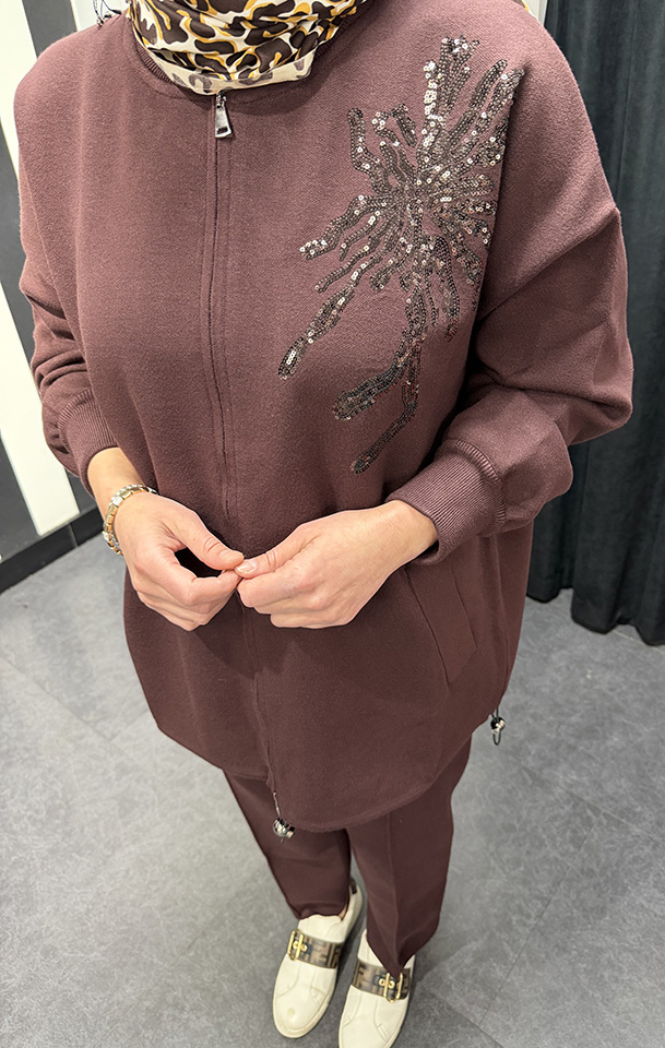 Miss Dalida Önden Fermuarlı Asimetrik Kesim Hırka Takım DARDO-TAUPE