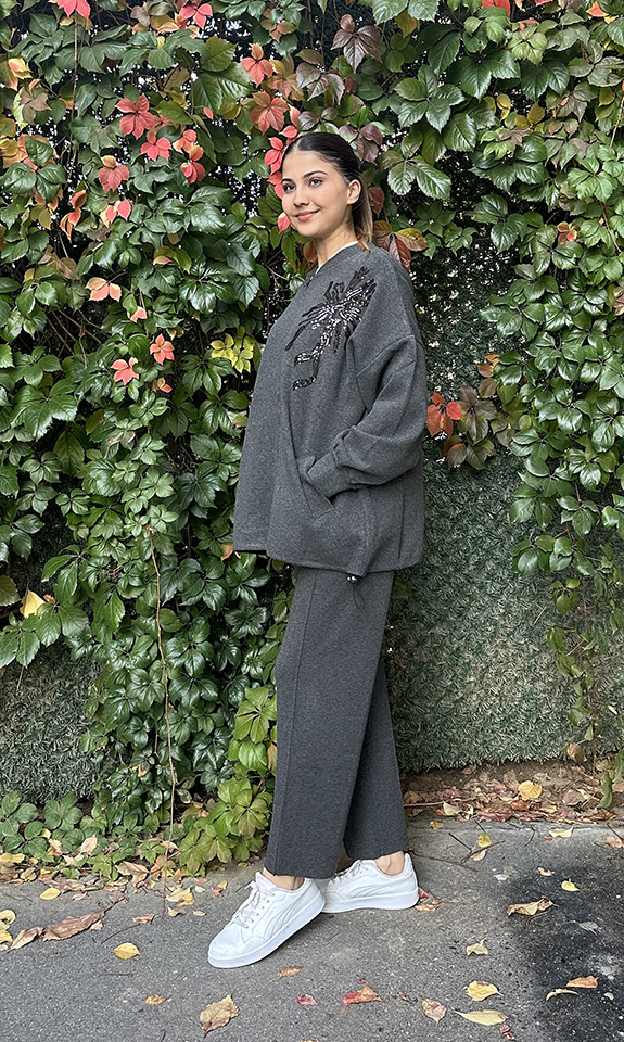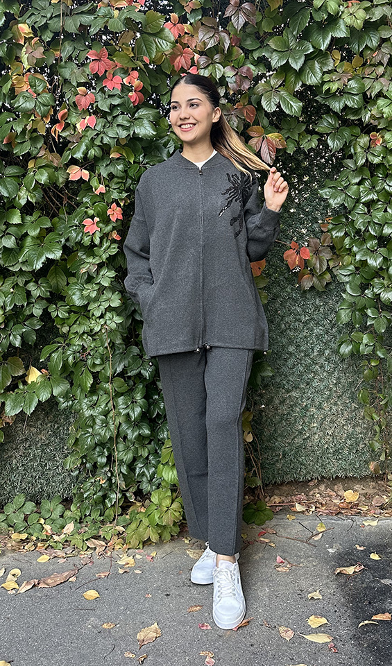 Miss Dalida Önden Fermuarlı Asimetrik Kesim Hırka Takım DARDO-TAUPE