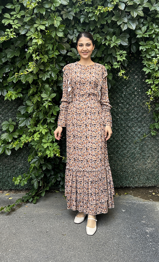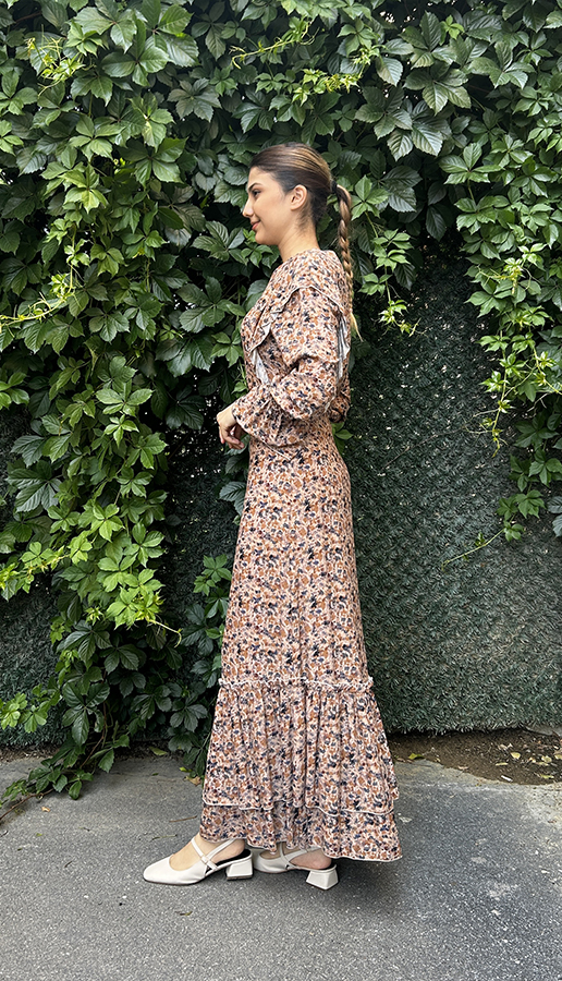 Yeşim Özcan Kolları Taş Detaylı Kat Kat Elbise GRİ