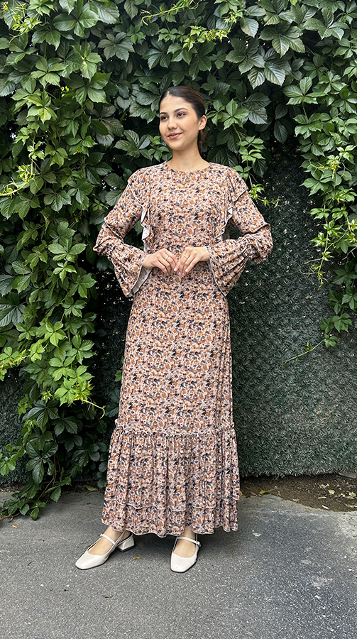 Vuu Önü Nervürlü Yarasa Kol Elbise Acı Kahve