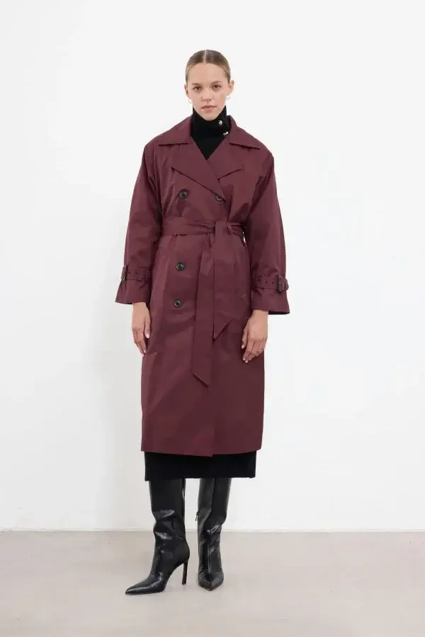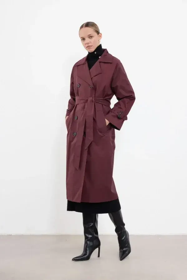 Miss Dalida Triko Detaylı Kumaş Trençkot MİNK