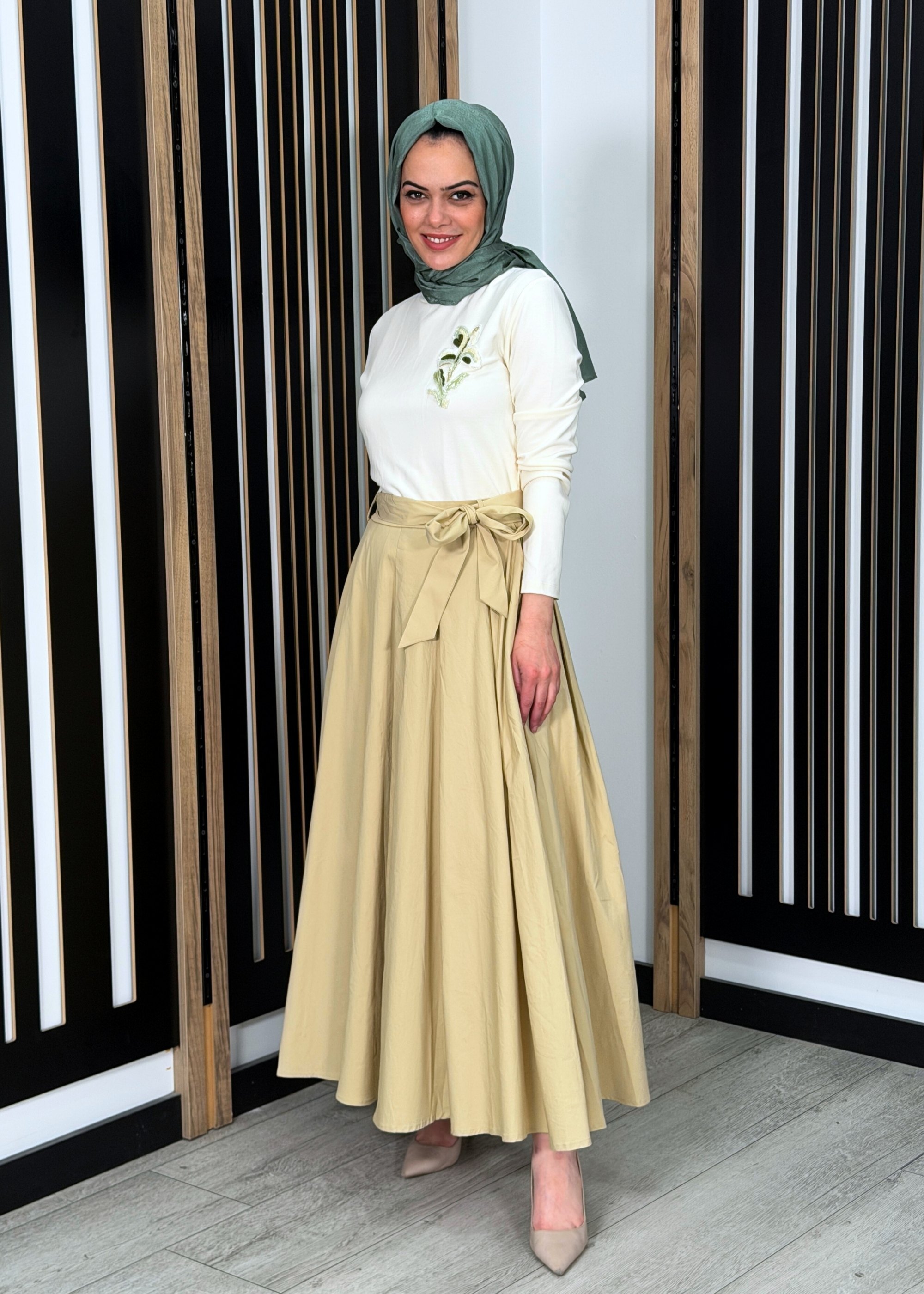 %69 modal, %28 polyamid ve %3 elastan karışımlı kumaşı sayesinde yumuşak dokulu, esnek ve gün boyu konfor sunan bir yapıya sahiptir. Akışkan duruşu ile zarif bir görünüm sağlar.