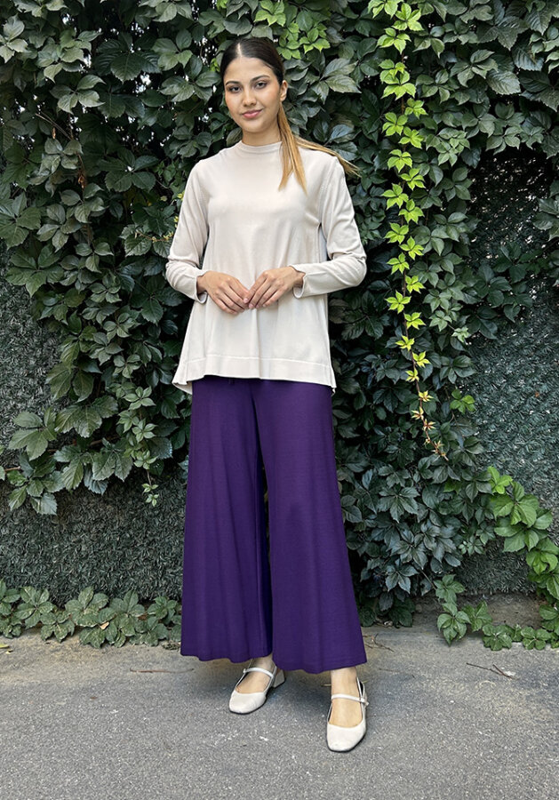 Hukka Beli Deri Detaylı Bol Pantolon MOR