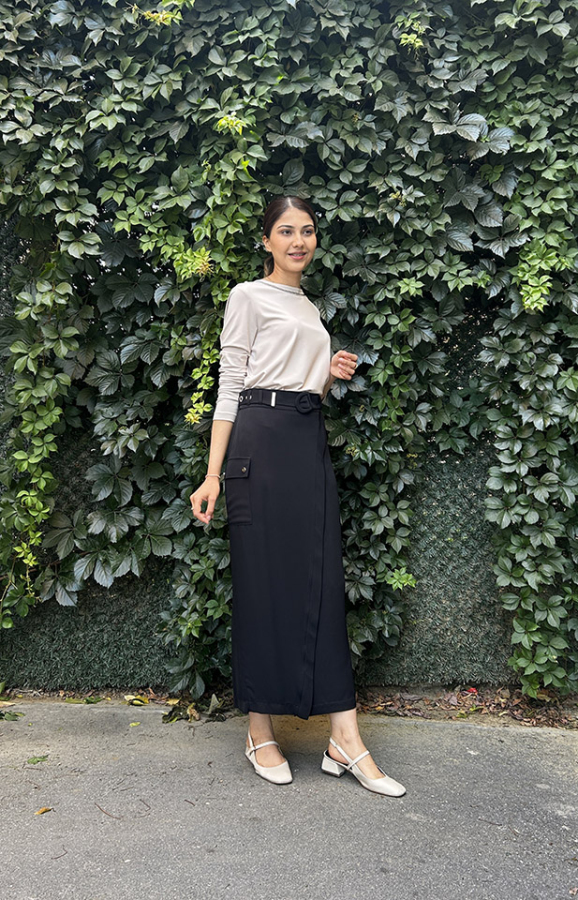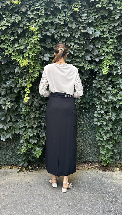 Hukka Siyah KuşGözü Detaylı Etek SİYAH