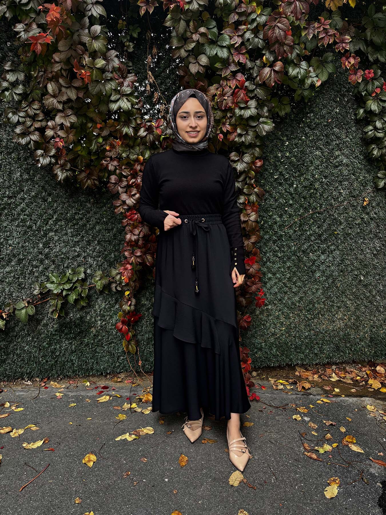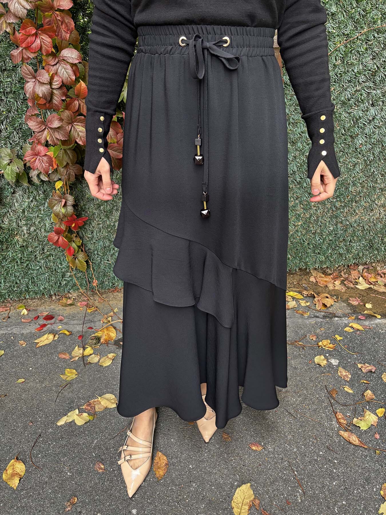Hukka Volanlı Etek SİYAH