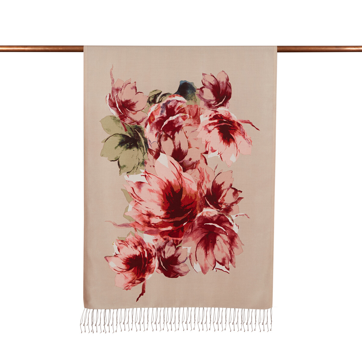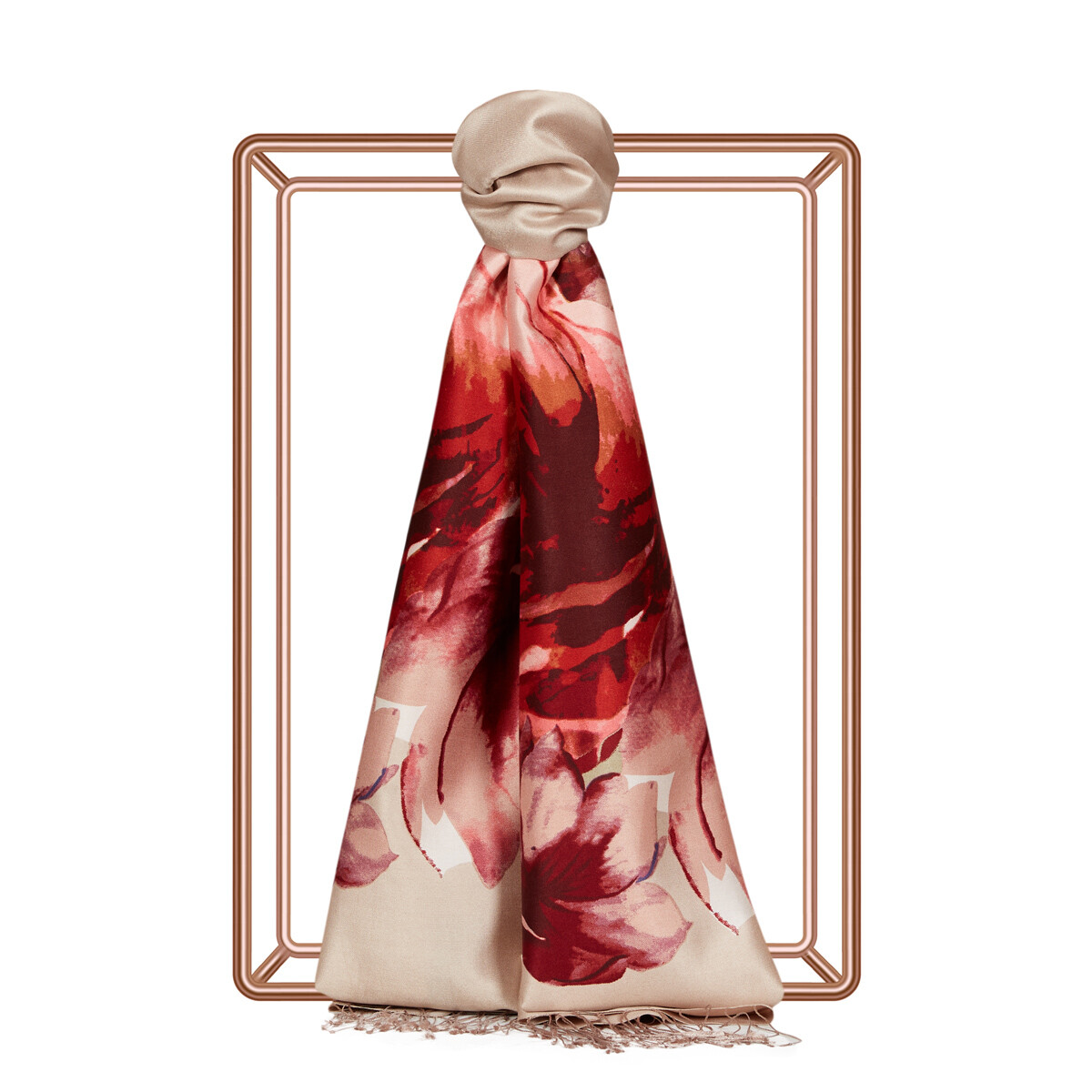 İpek Evi Uyanış Desenli İpek Şal VİZON