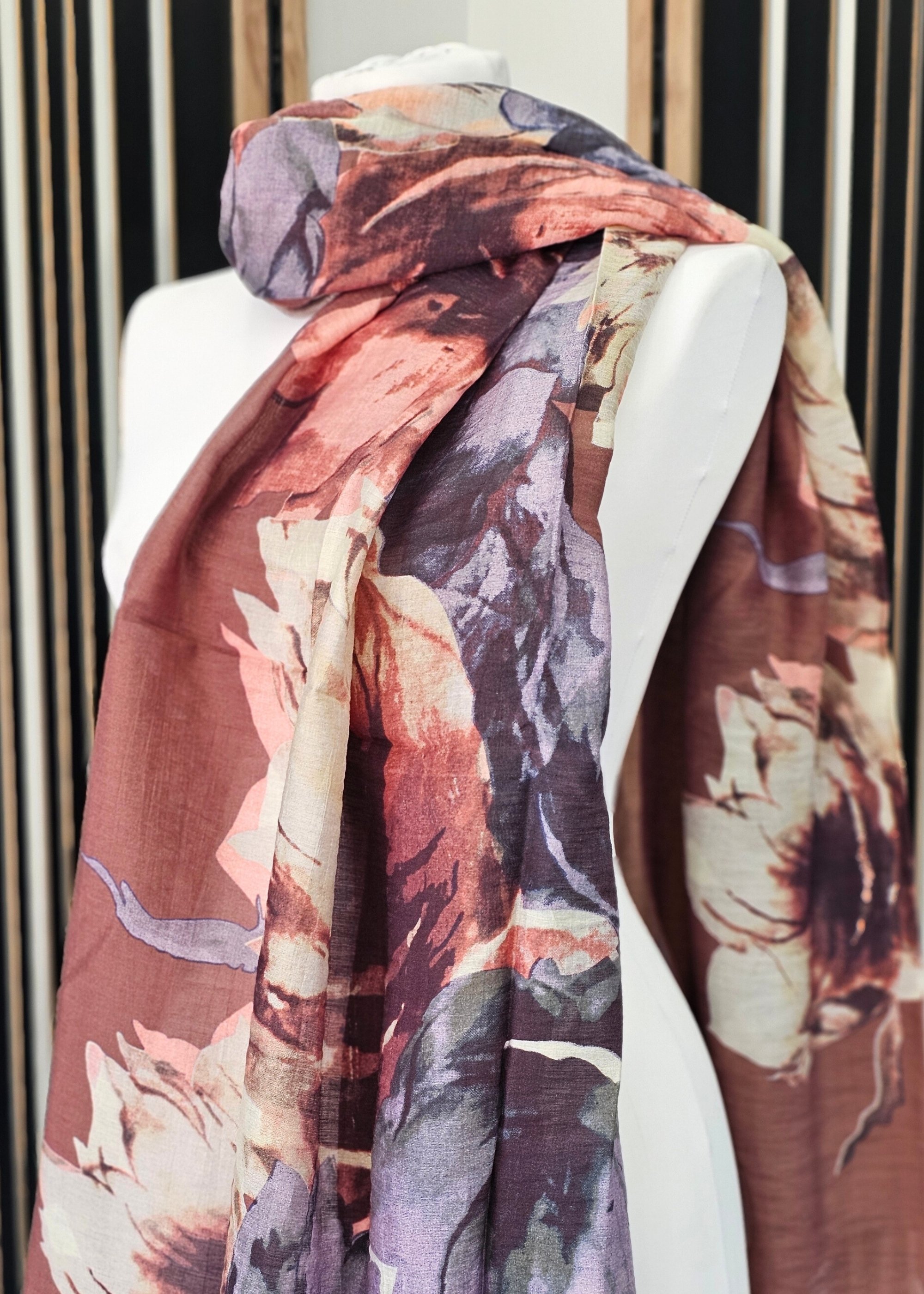 İpekevi Büyük Çiçek Desenli Şal VİZON