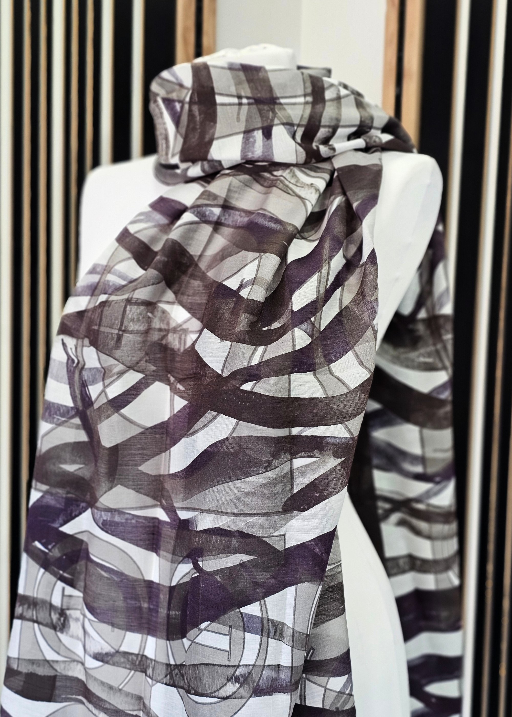 İpekevi Gece Dalgası Desenli Şal Siyah Beyaz