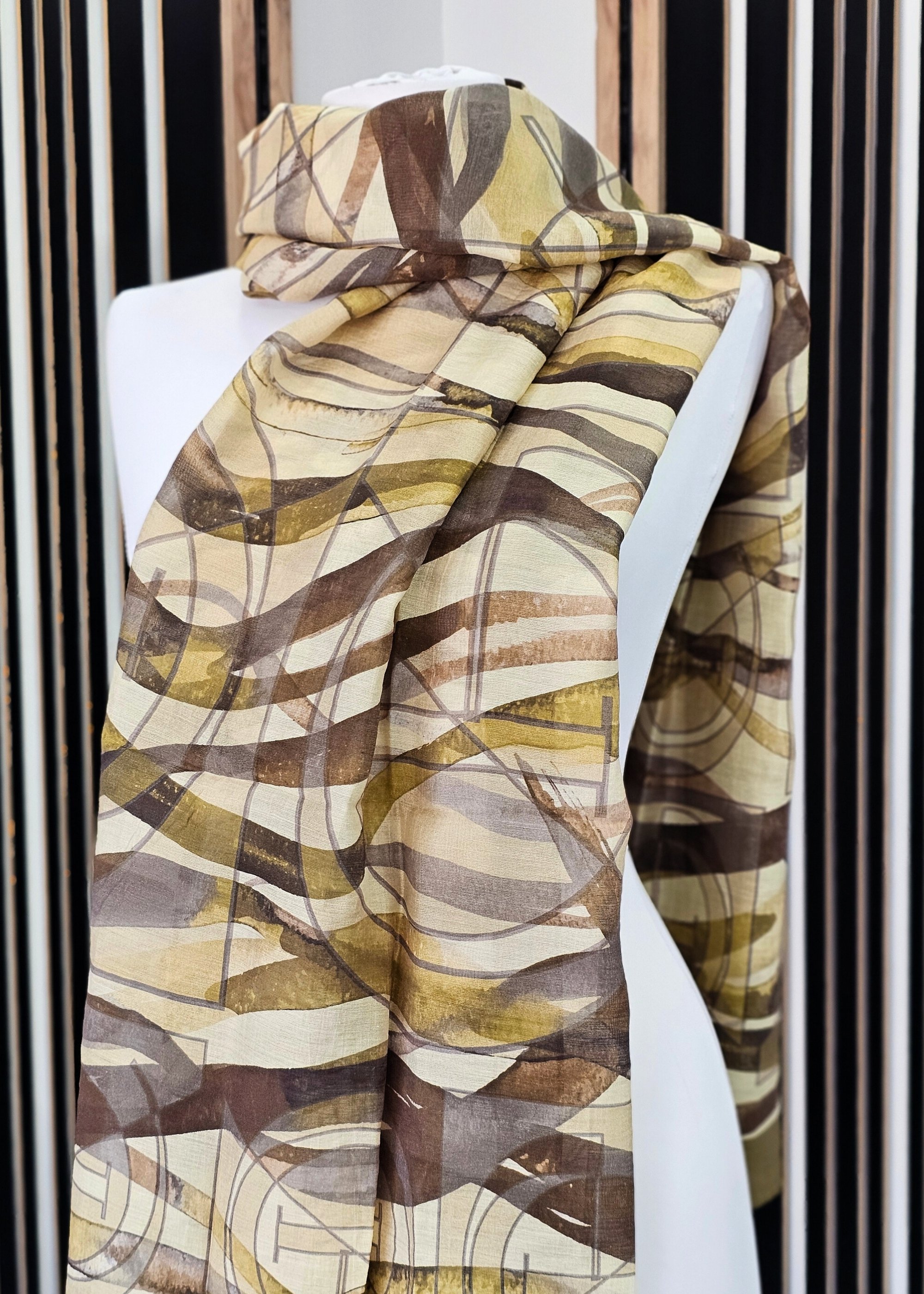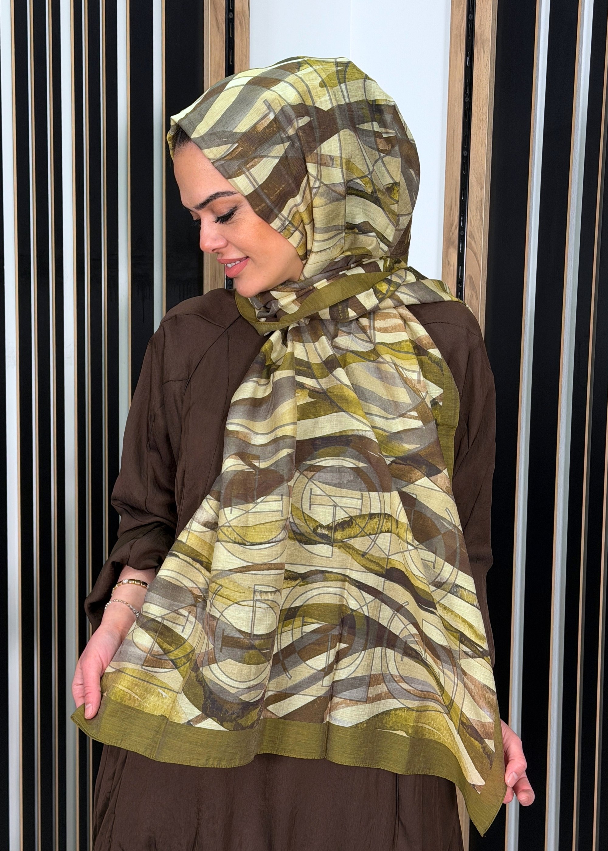 İpekevi Gece Dalgası Desenli Şal YAĞ YEŞİLİ