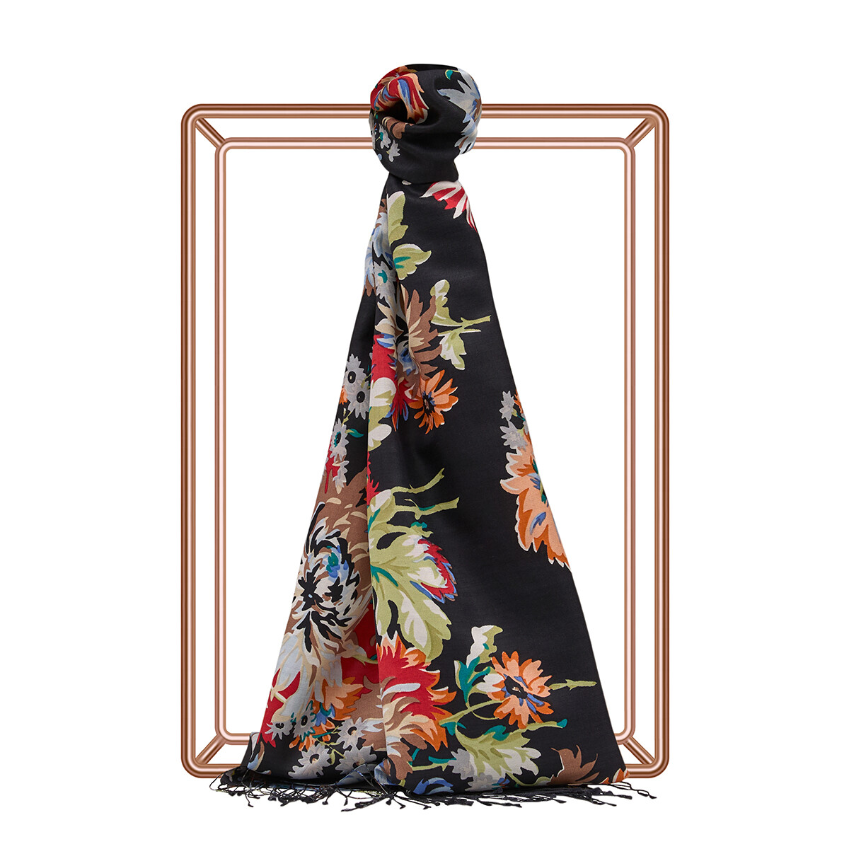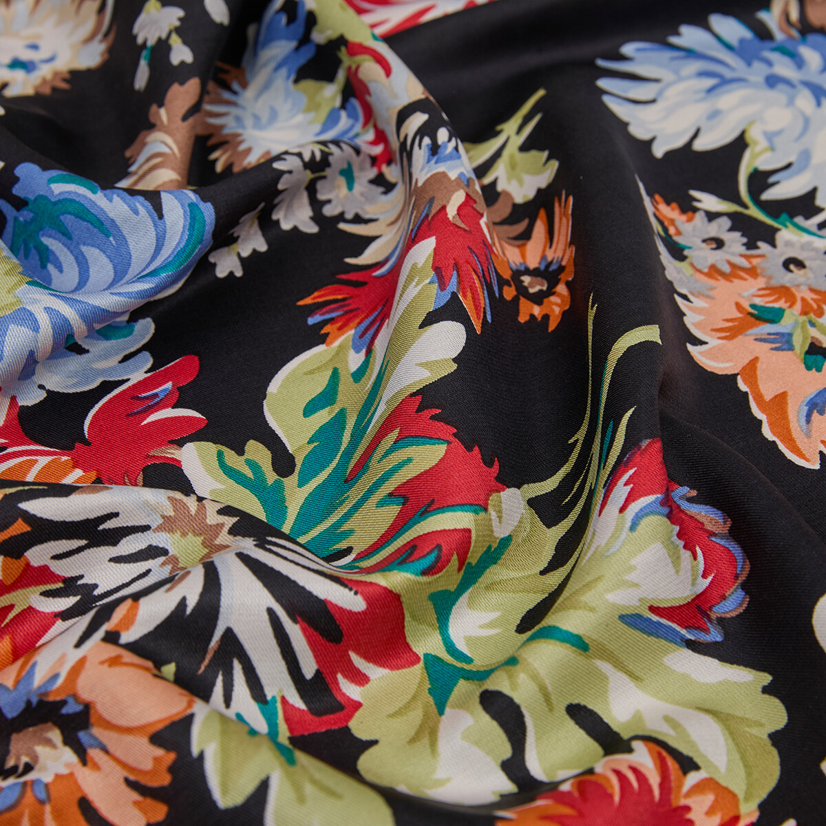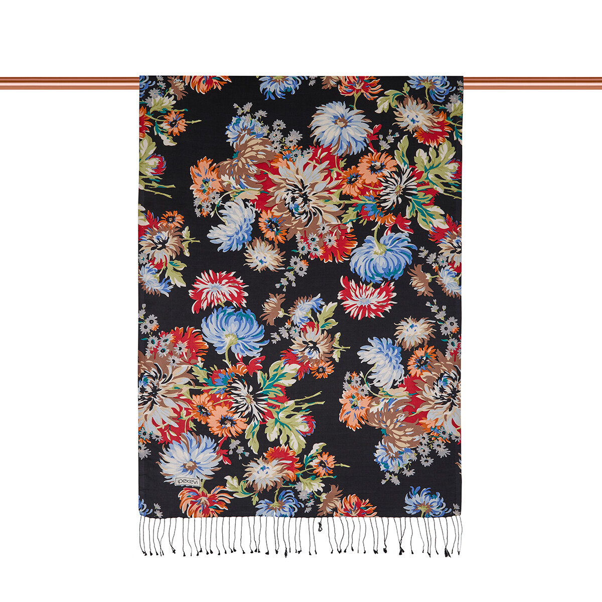 İpekevi Kasımpatı Desenli İpek Şal SİYAH