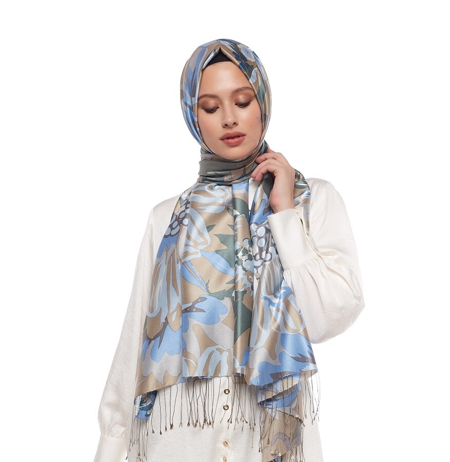 İpekevi Nihavent Desenli İpek Şal BEBE MAVİ
