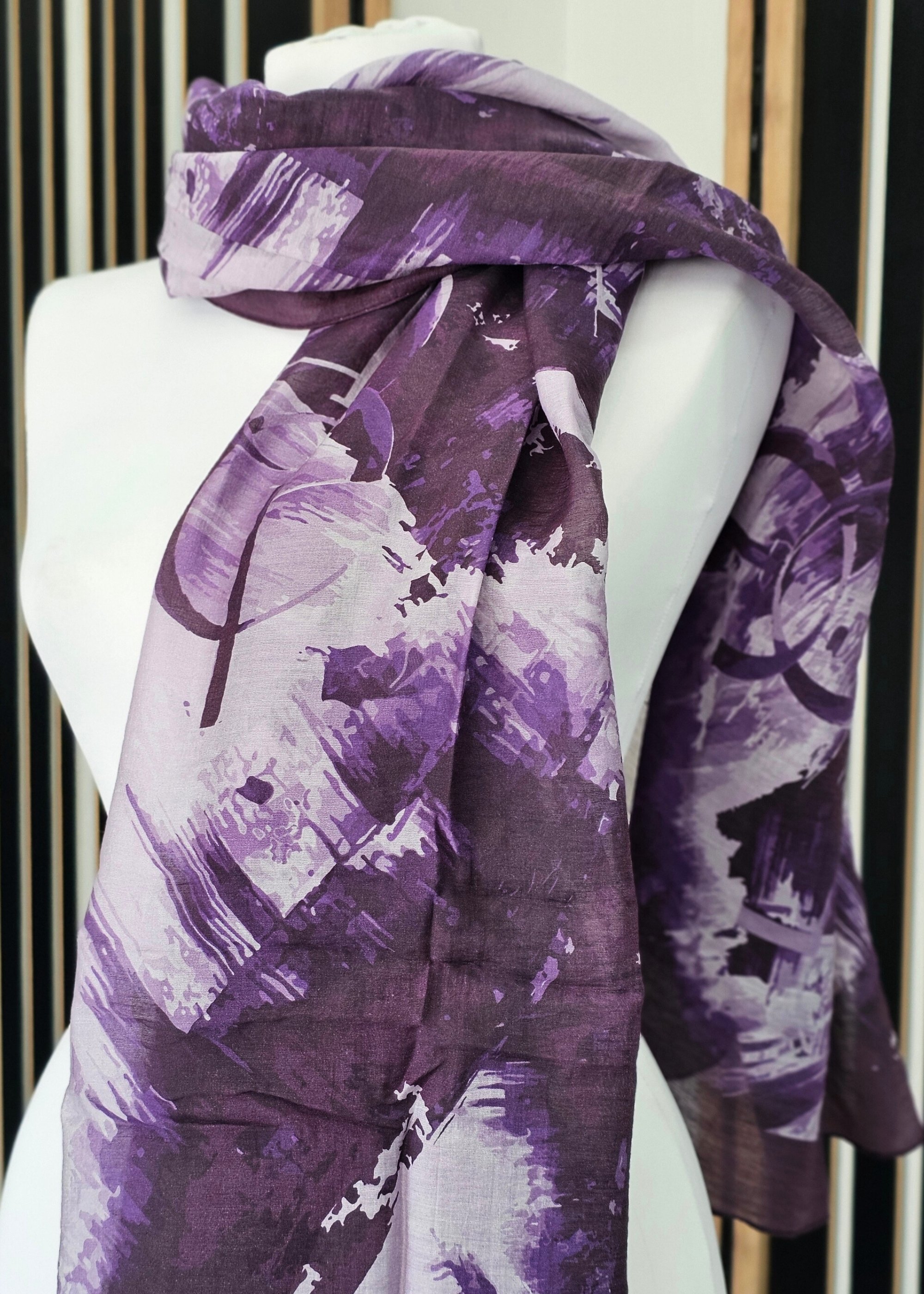 İpekevi Soyut Desenli Şal Asil Mor