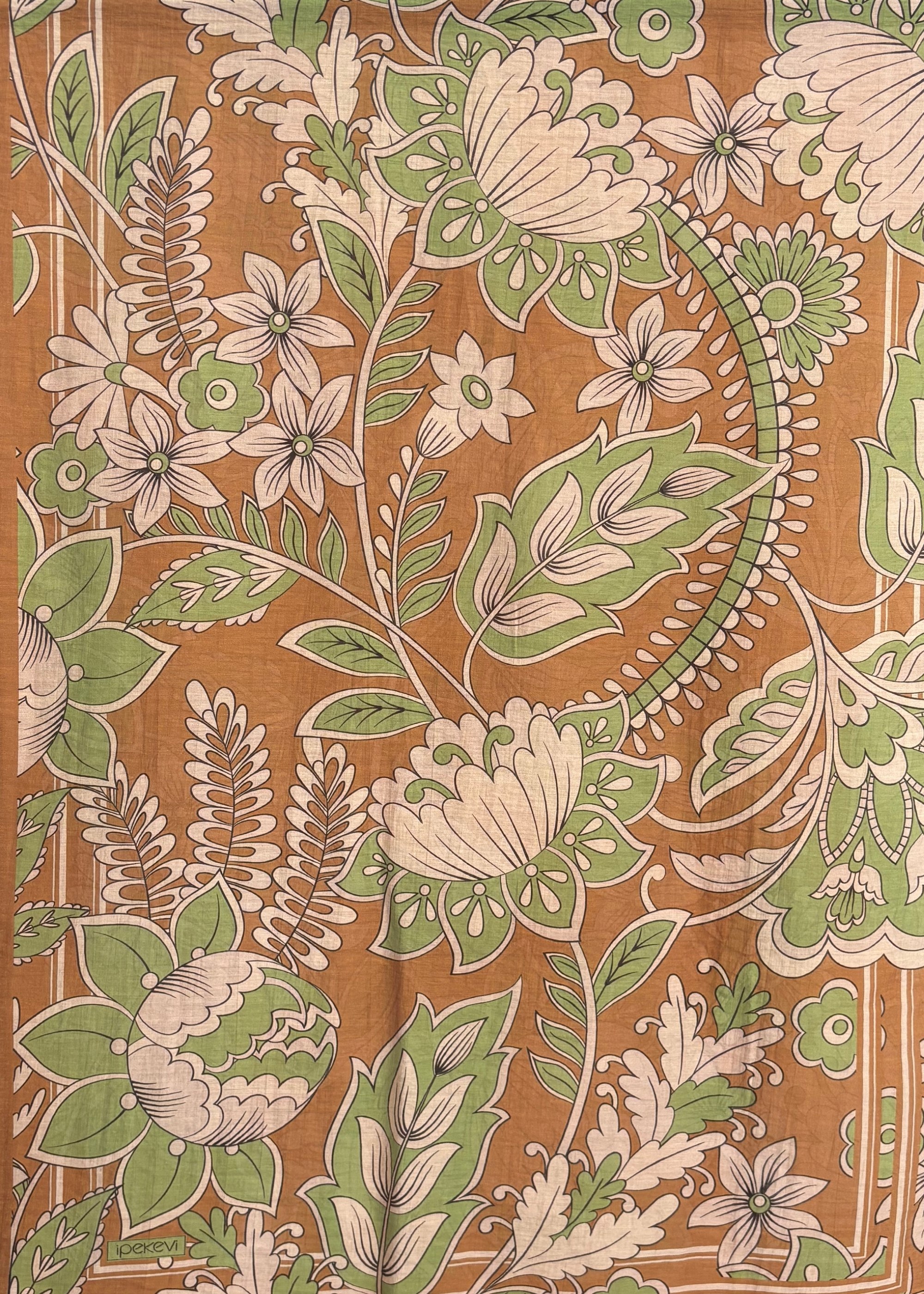 İpekevi Saray Sarmaşığı Desenli Tensel Şal Bal Köpüğü
