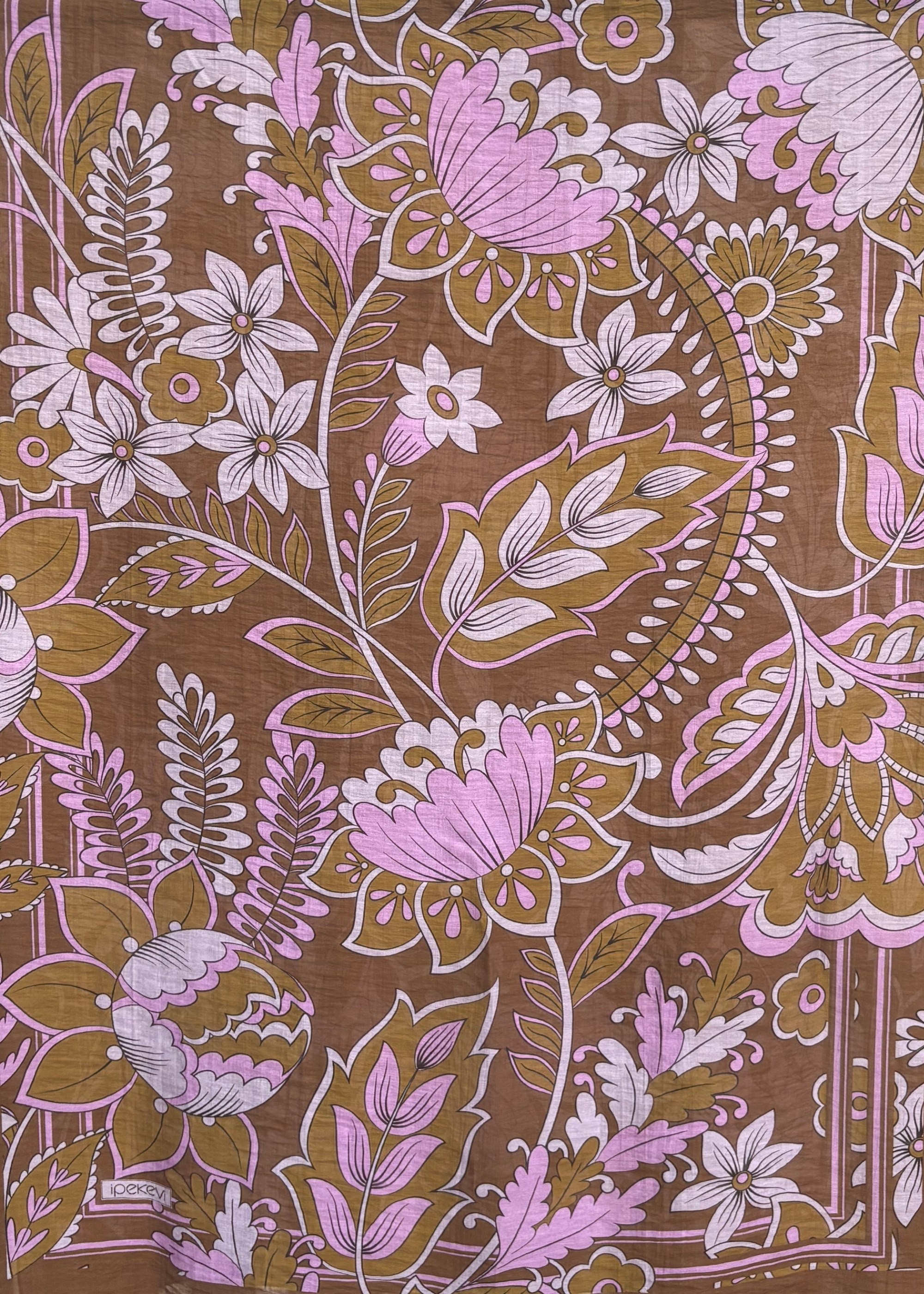 İpekevi Saray Sarmaşığı Desenli Tensel Şal KAHVE LİLA