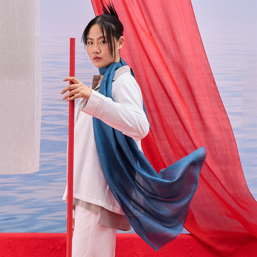 Suya düşen bir tüyün dokunuşu. İpek, yün ve kotonun en seçkin halini, İtalyan artislerin Bu seri size rüzgarın esintisini hissettirmek için tasarlandı. %30 ipek, % 30 yün, % 40 koton Sadece kuru temizleme önerilmektedir. Yaklaşık 180/70 cm'dir