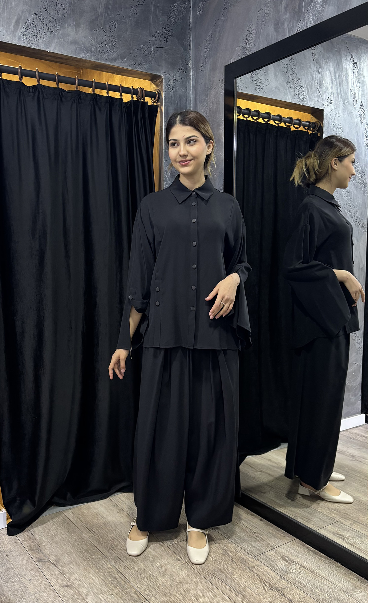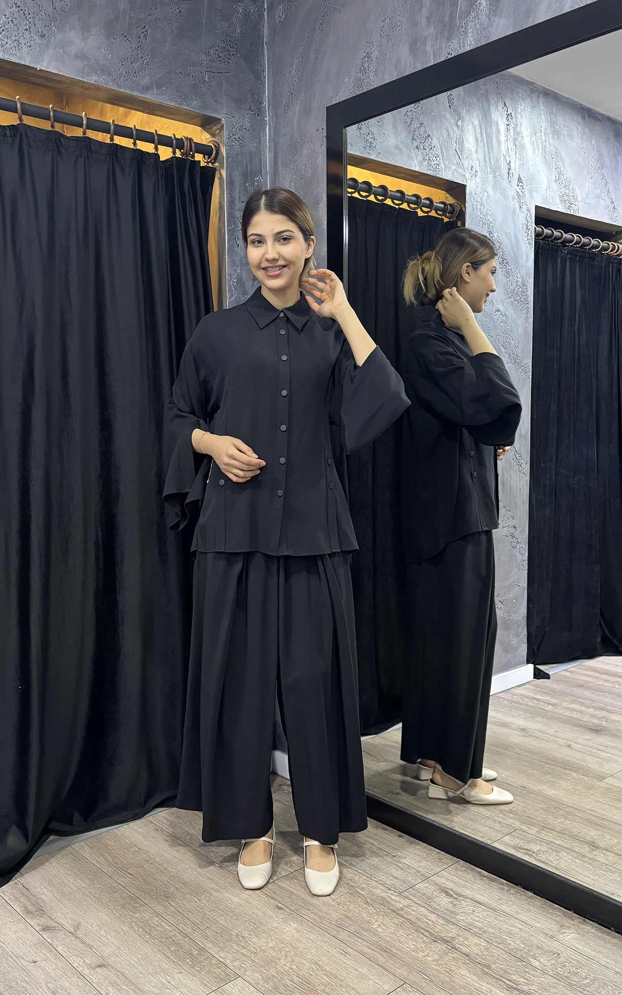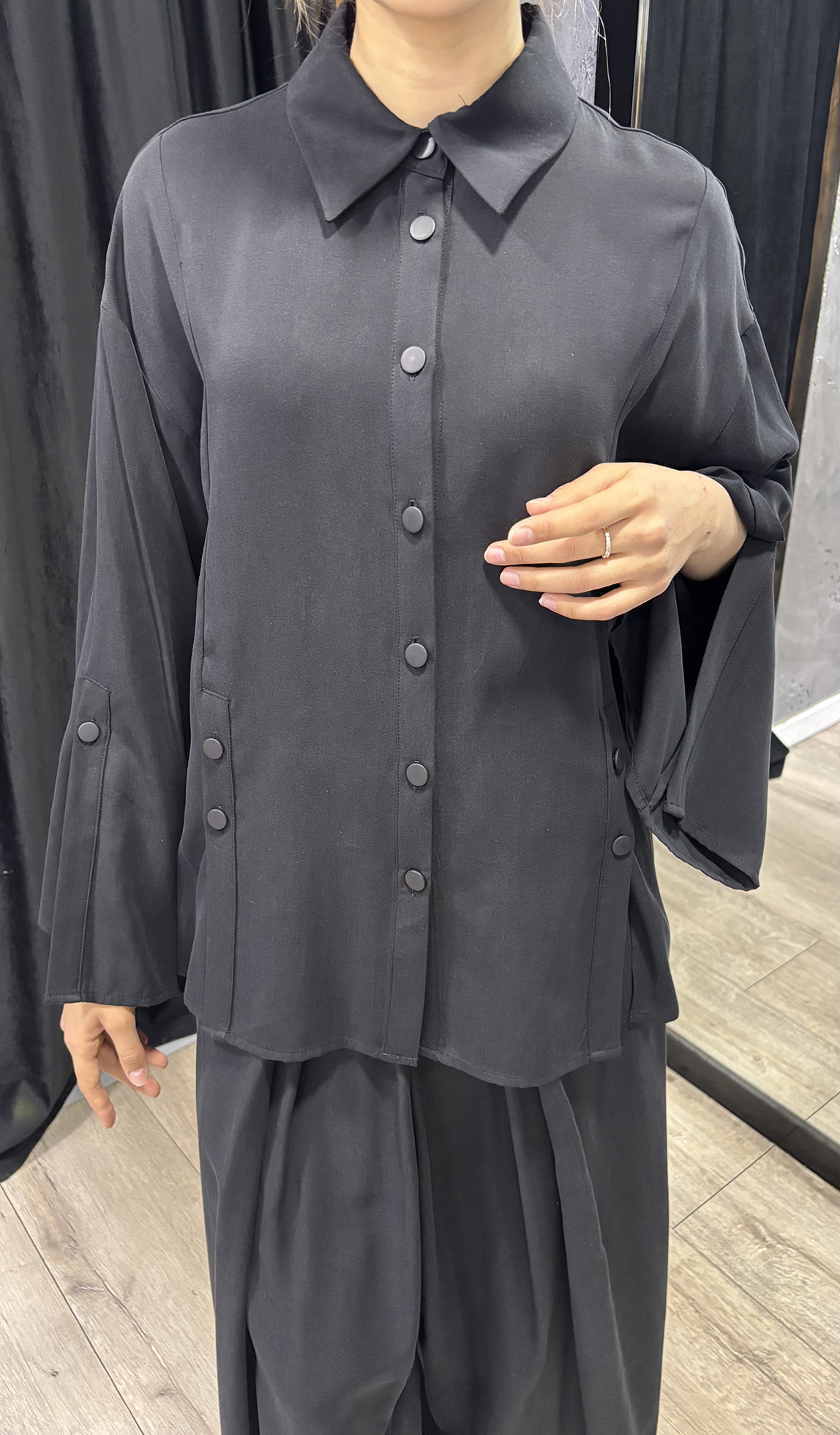 Si Design Omuzu Boncuk Detaylı Gömlek SİYAH