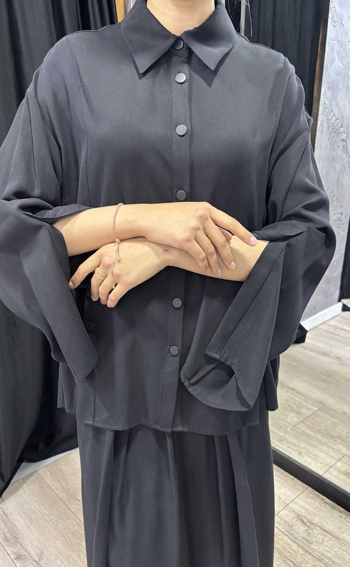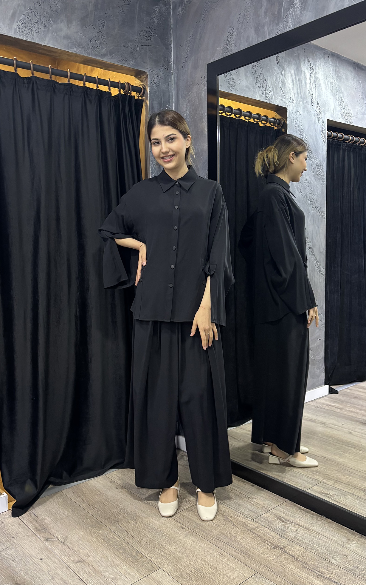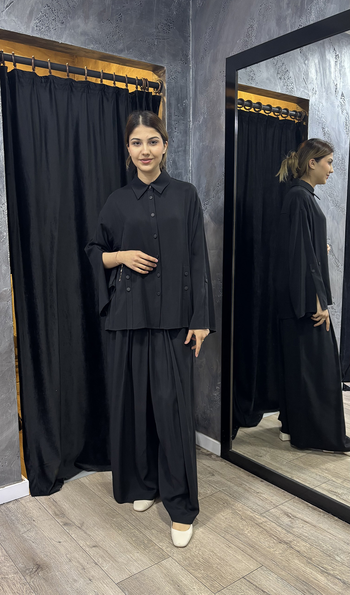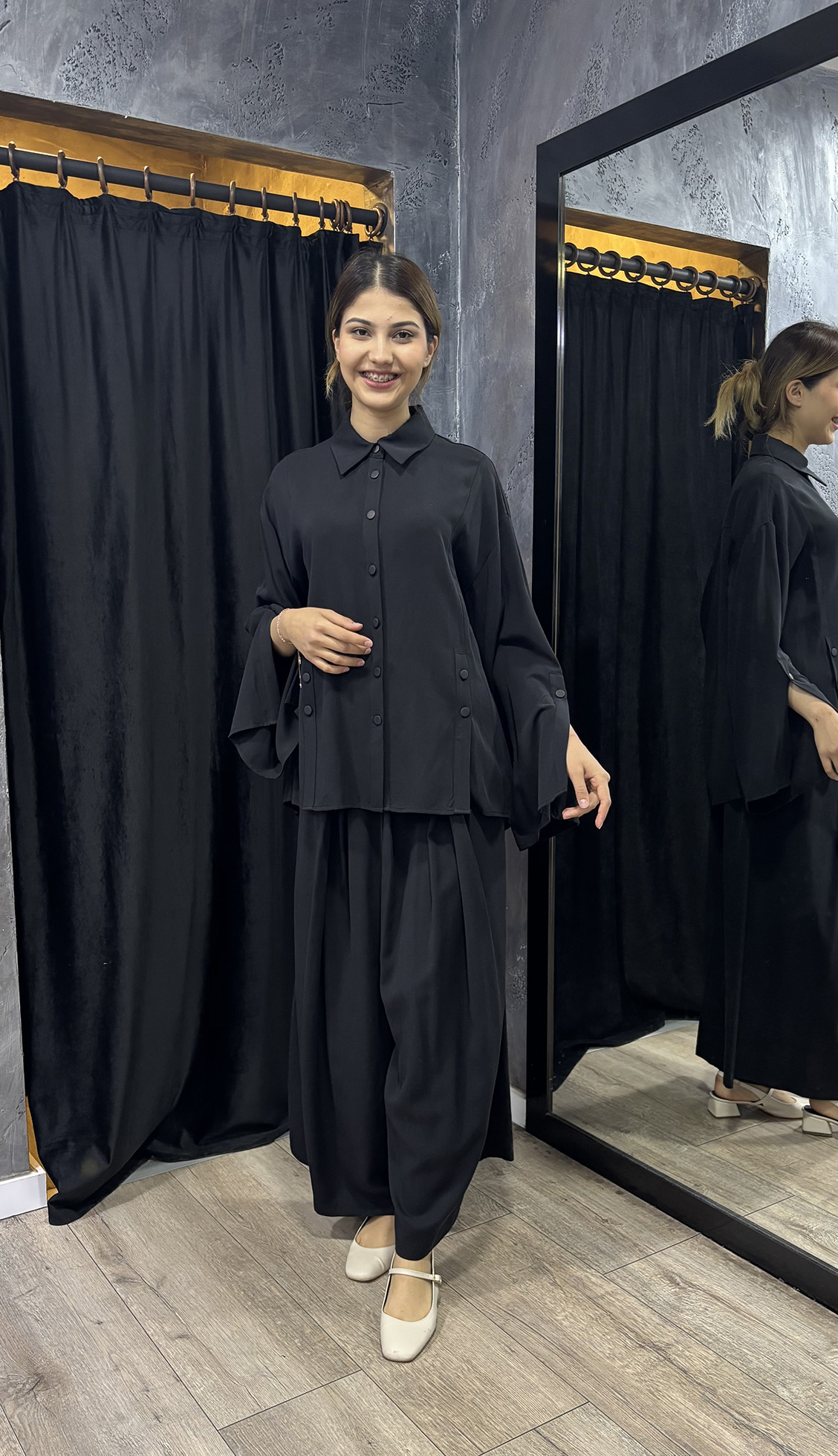 Si Design Omuzu Boncuk Detaylı Gömlek SİYAH