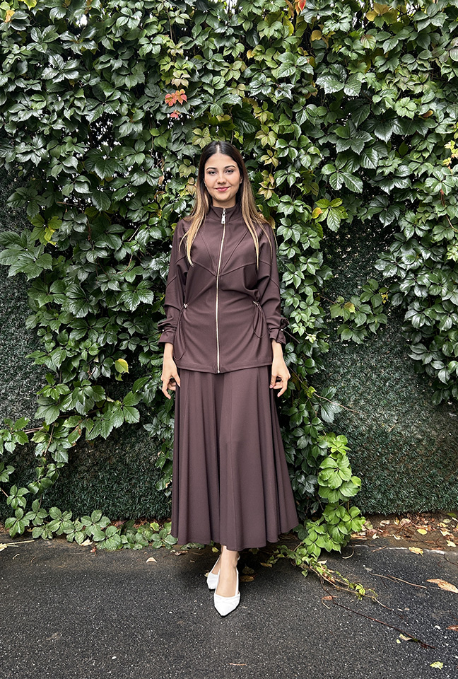 Zeynep Zümra Büzgü Detatlı Pliseli Etek MÜRDÜM