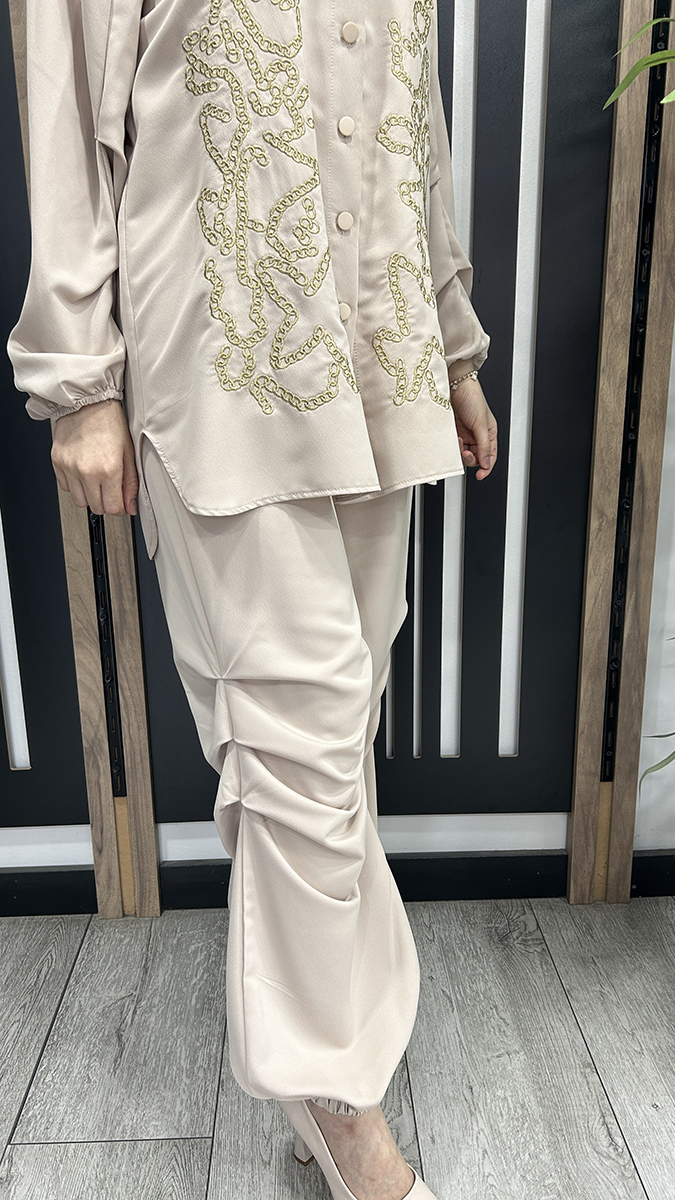 Yeşim Özcan Yanı Sim Detaylı Pantolon Naturel