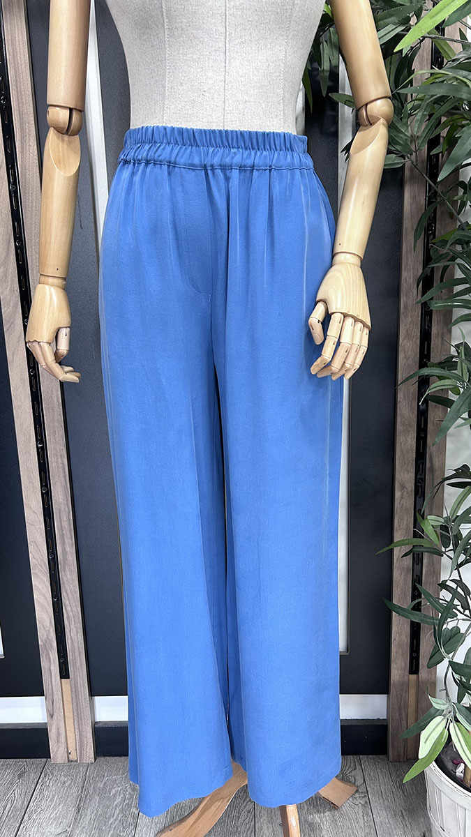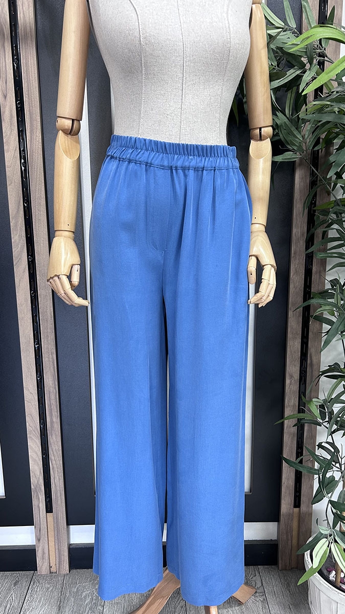 Yeşim Özcan Beli Lastikli Boş Paça Pantolon İNDİGO