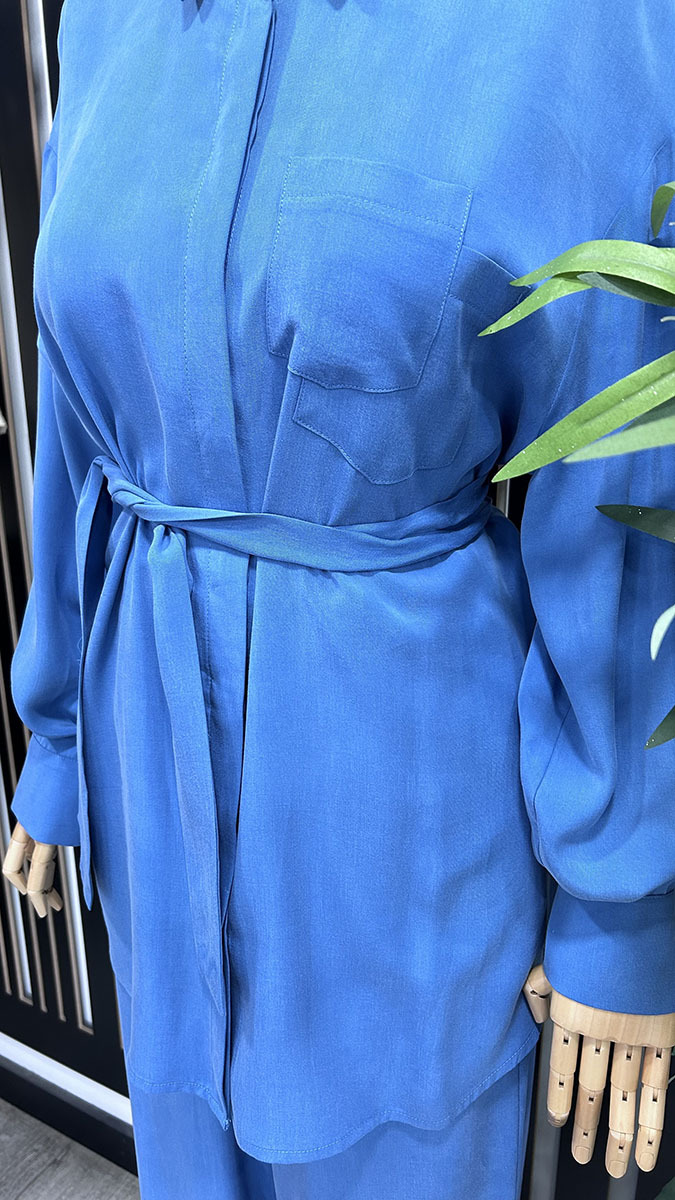 Yeşim Özcan Omuzu Boncuk Detaylı Bluz MAVİ