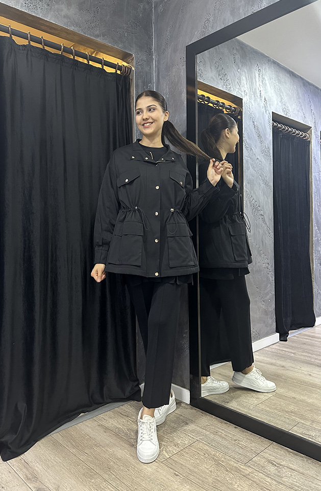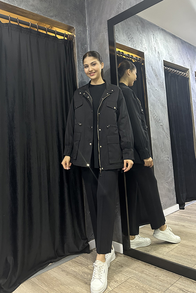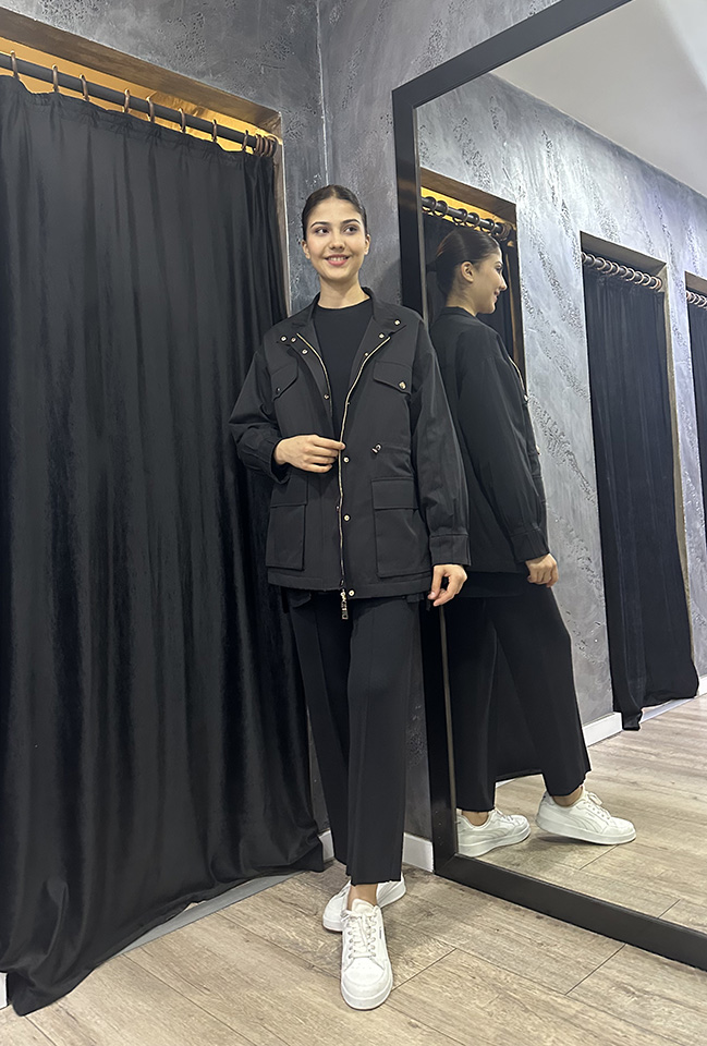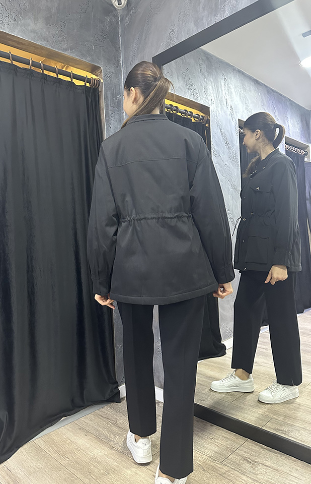Qupra İnci Aksesuarlı Roma Bomber Ceket SİYAH
