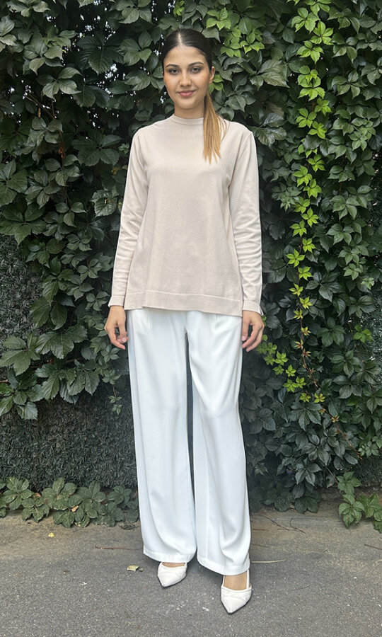 Yeşim Özcan Kalın Triko Pantolon EKRU