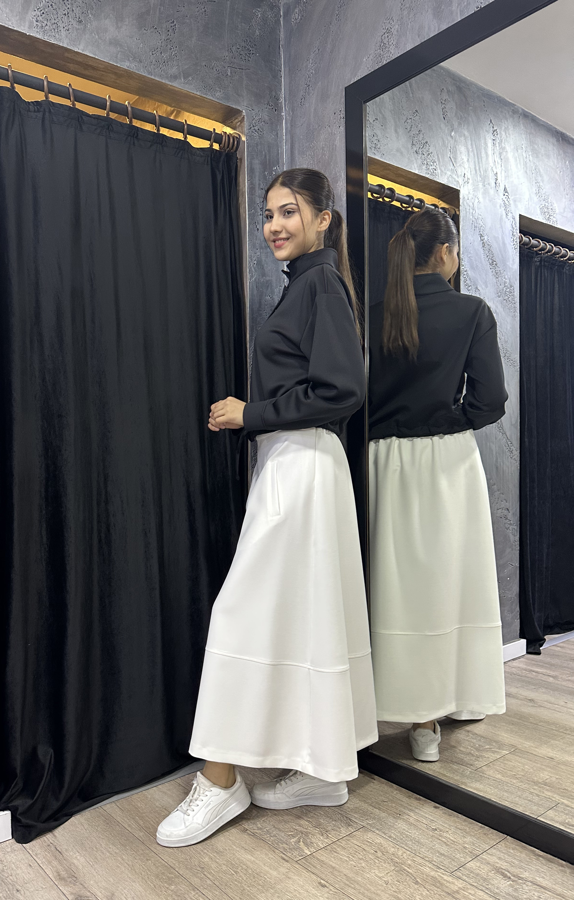 Miss Dalida Düz Renk A Kesim Cupra Etek BLACK