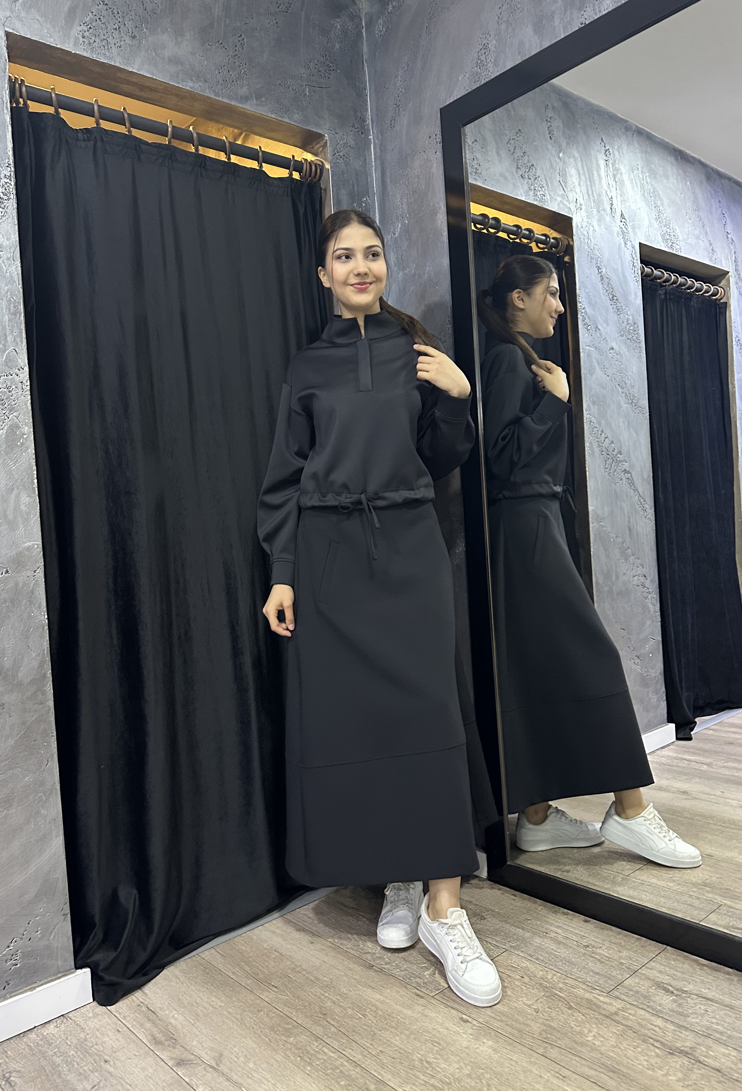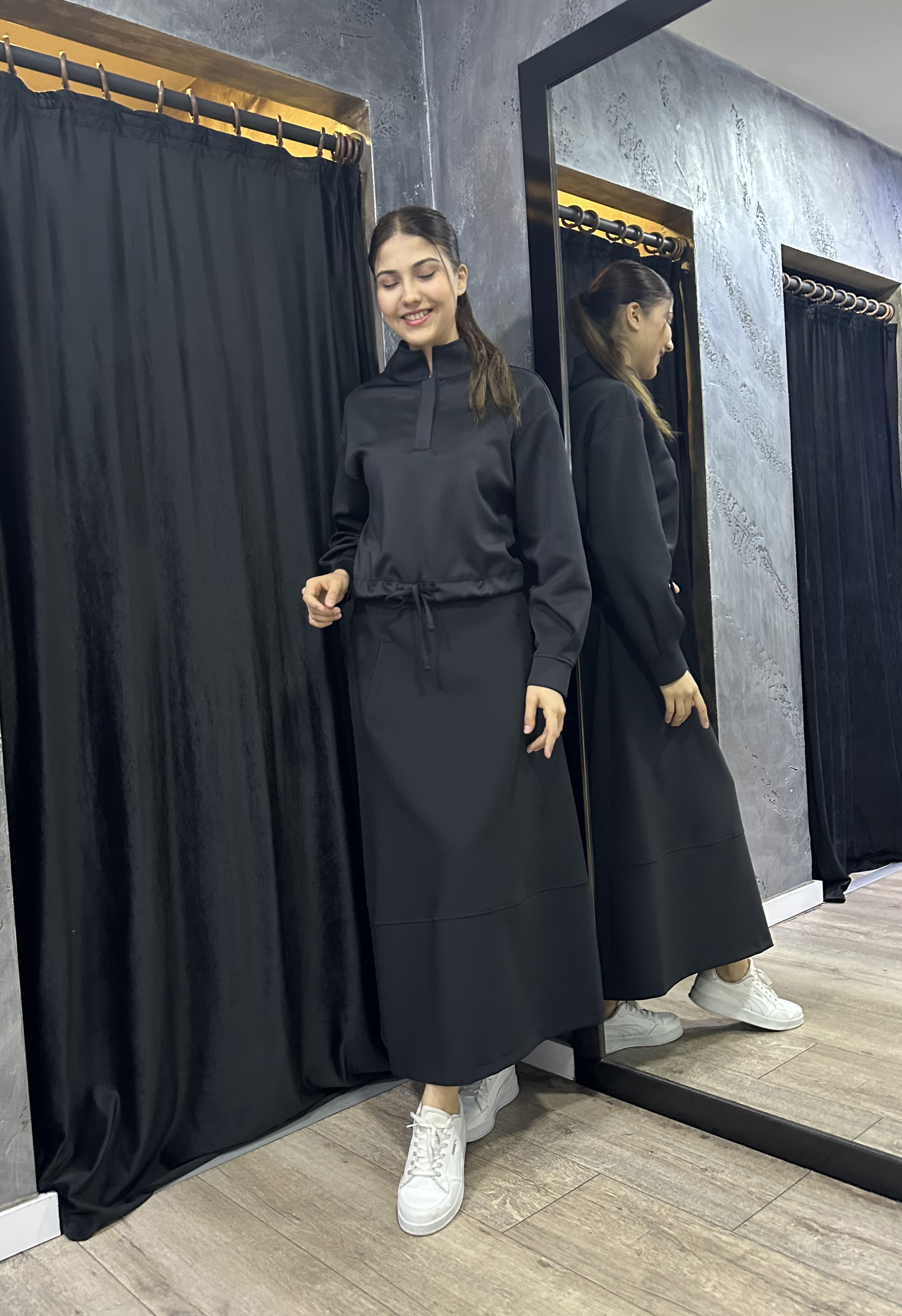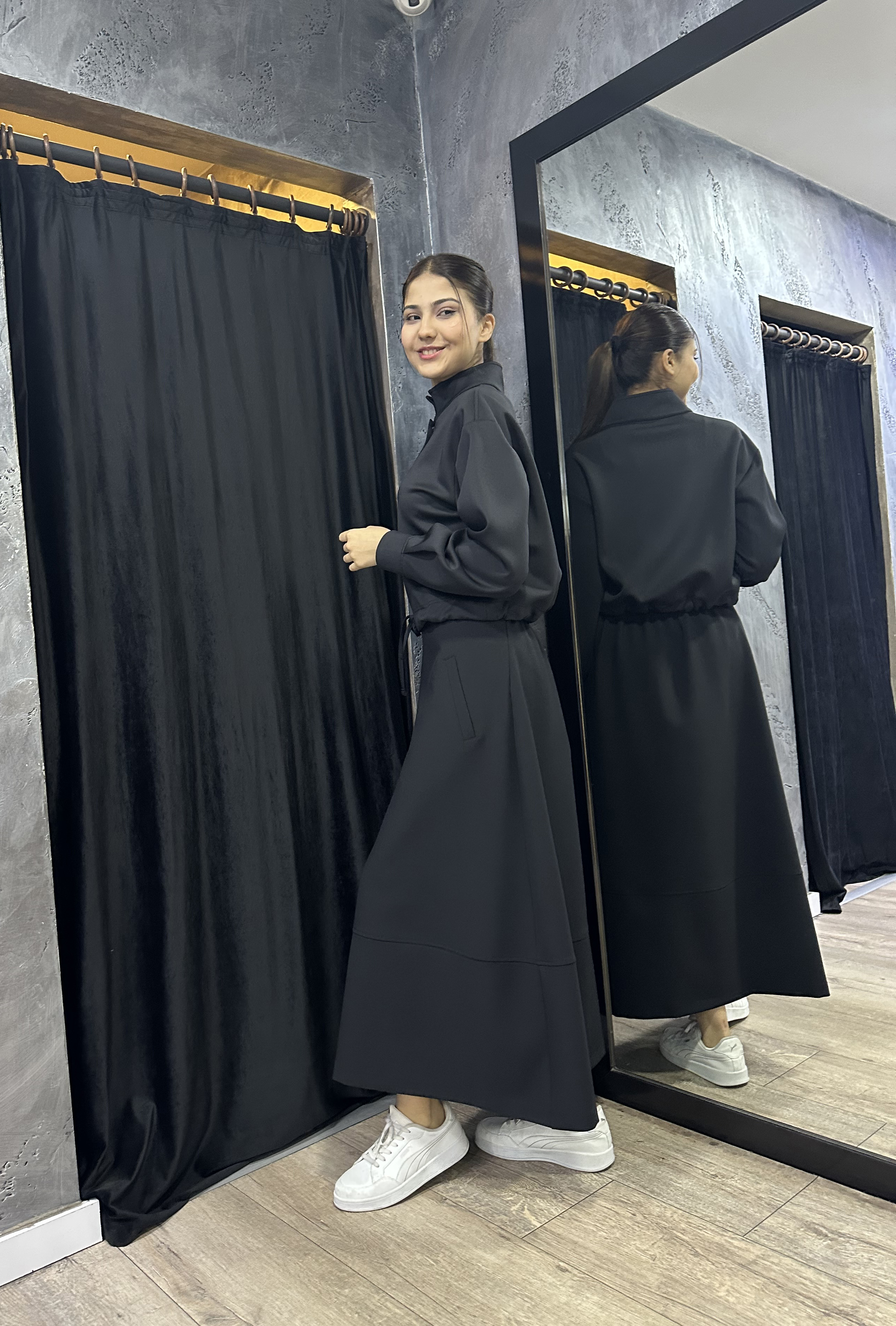 Miss Dalida Düz Renk A Kesim Cupra Etek BLACK