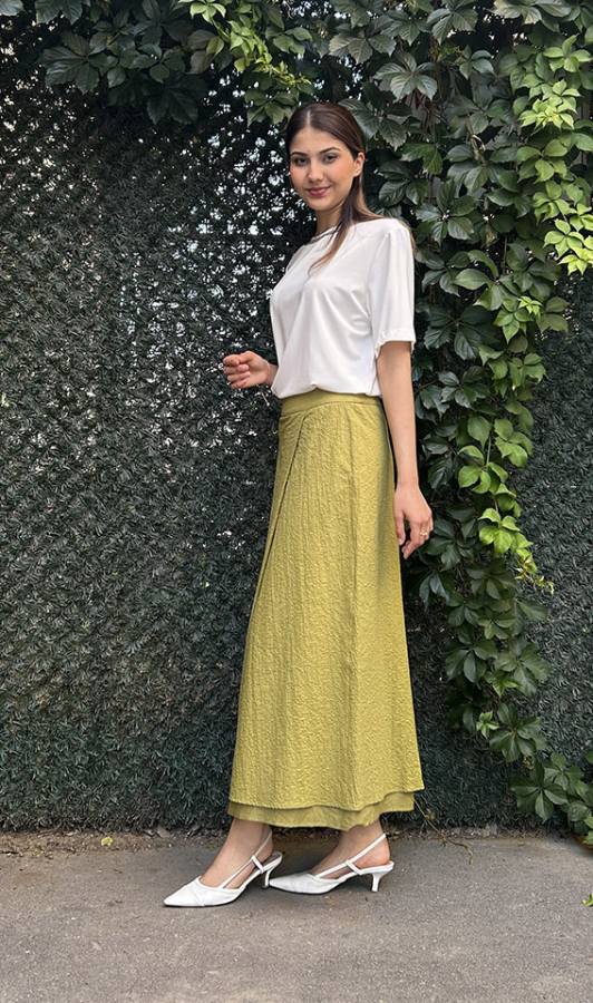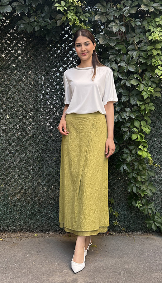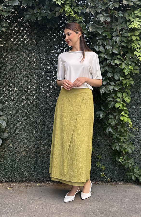 Yeşim Özcan Lime Kare Desenli Etek LİME
