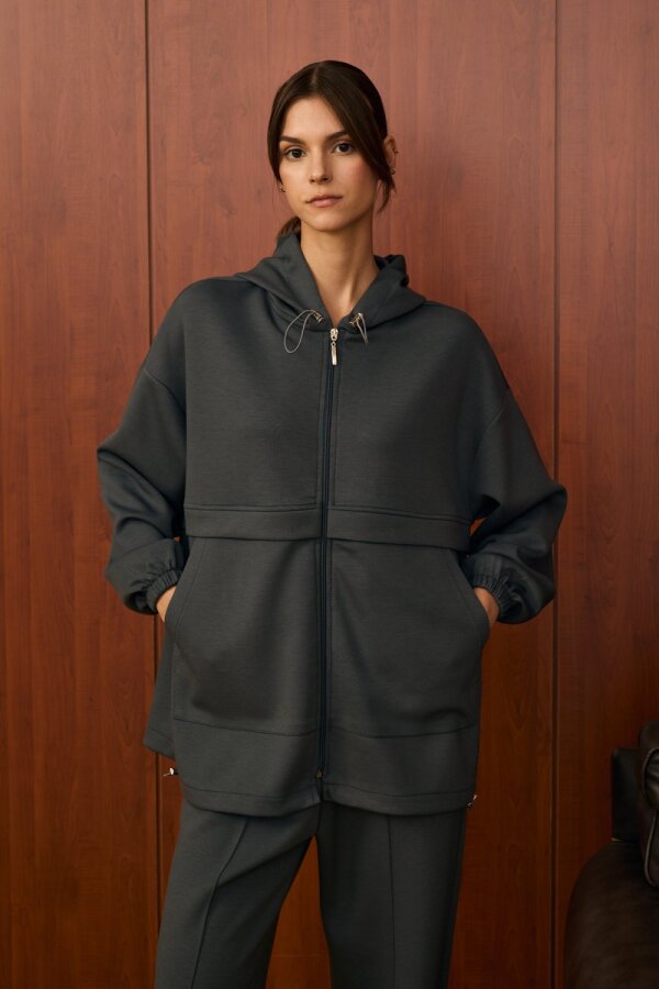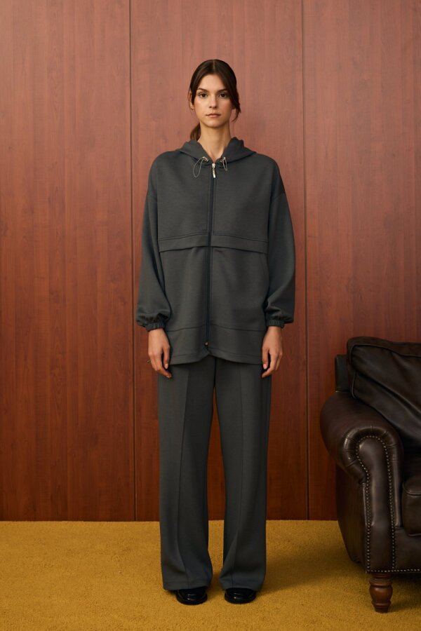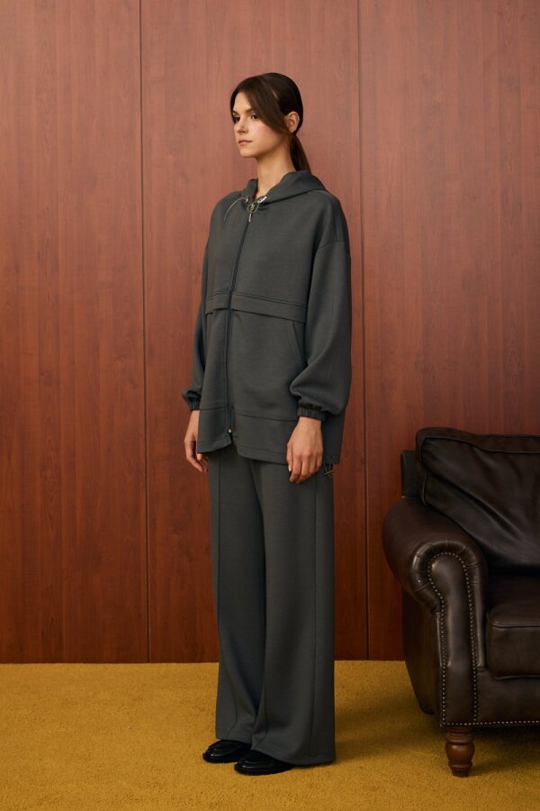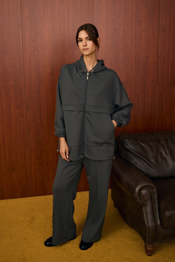 Kumaş: İthal Modal Üst Ön Boy: 72 cm Arka Boy: 105 cm Bedenleme: 1/2 Manken Bilgileri: Boy: 175 cm, Giydiği Beden: 1 Detaylar: Fermuar ve geniş cep detaylı üst, bol paça pantolon Fermuar detaylı ve önünde geniş cepleri bulunan salaş kesim üst, modern ve fonksiyonel bir tasarım sunar. Hem evde hem de dışarıda rahatlıkla kullanabileceğin bu takım, gardırobunun vazgeçilmez bir parçası olacak.