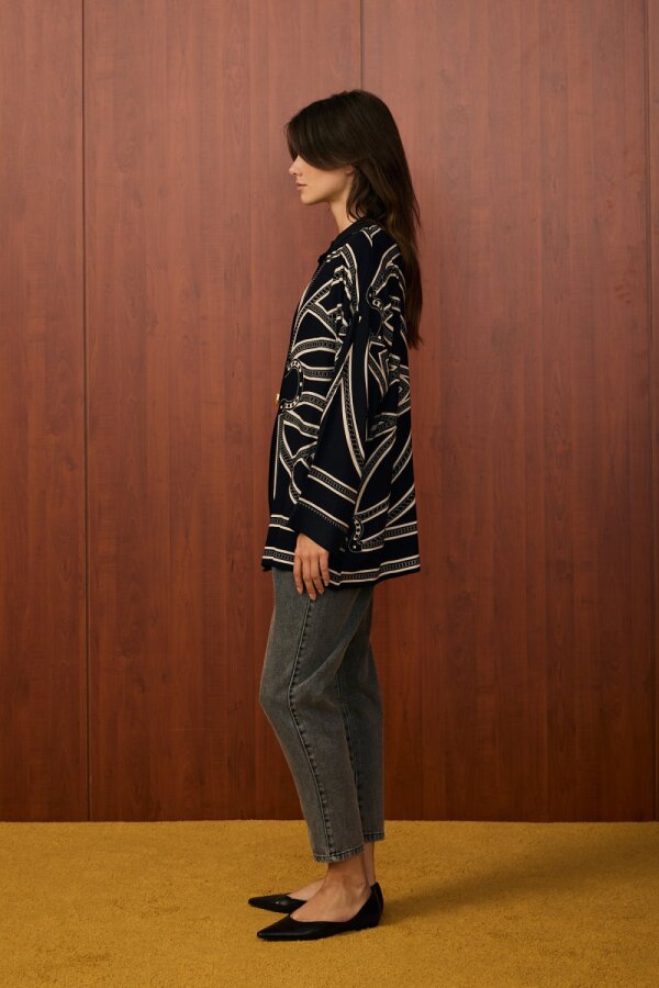 CLoche Geometrik Triko Bluz LACİVERT
