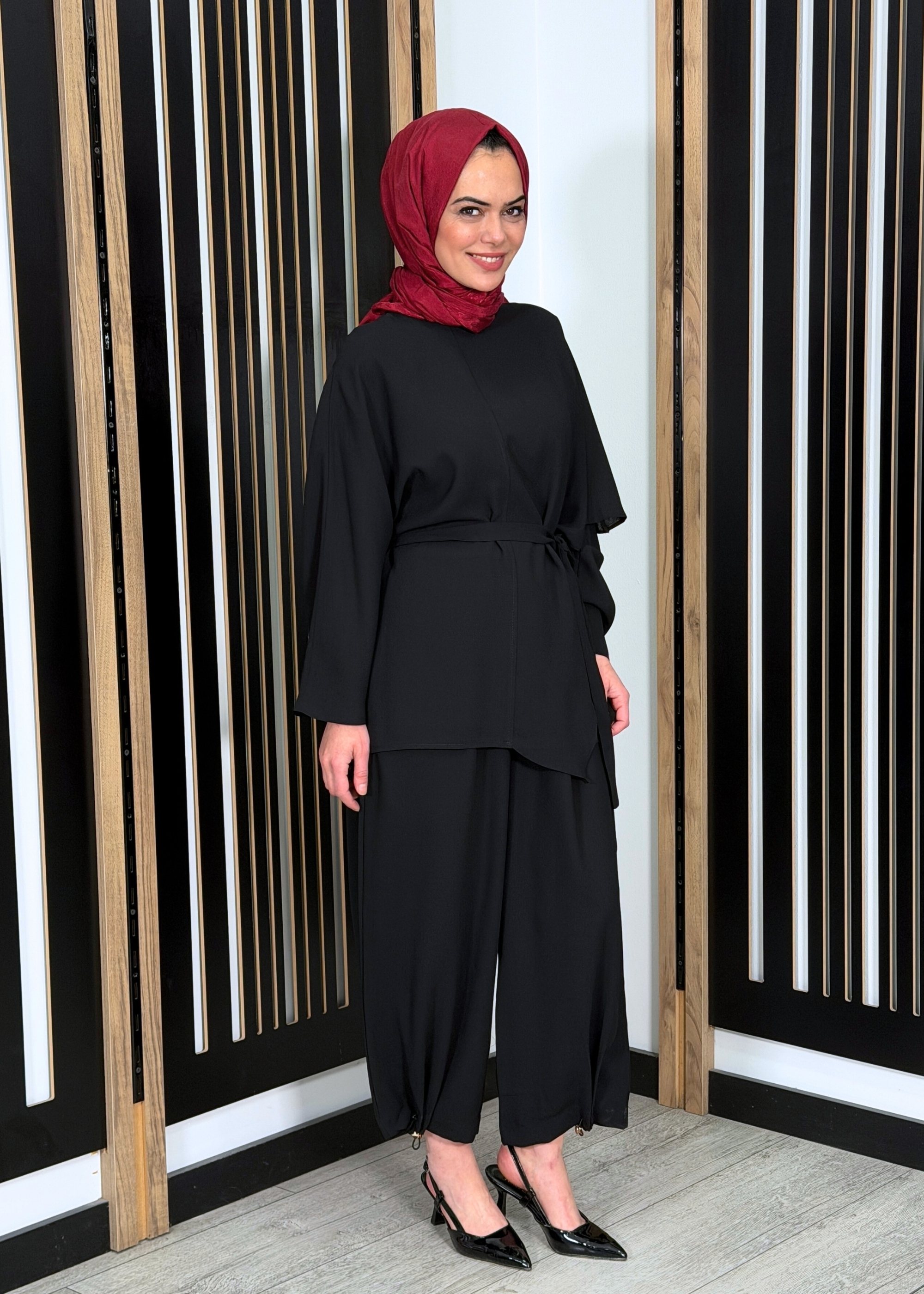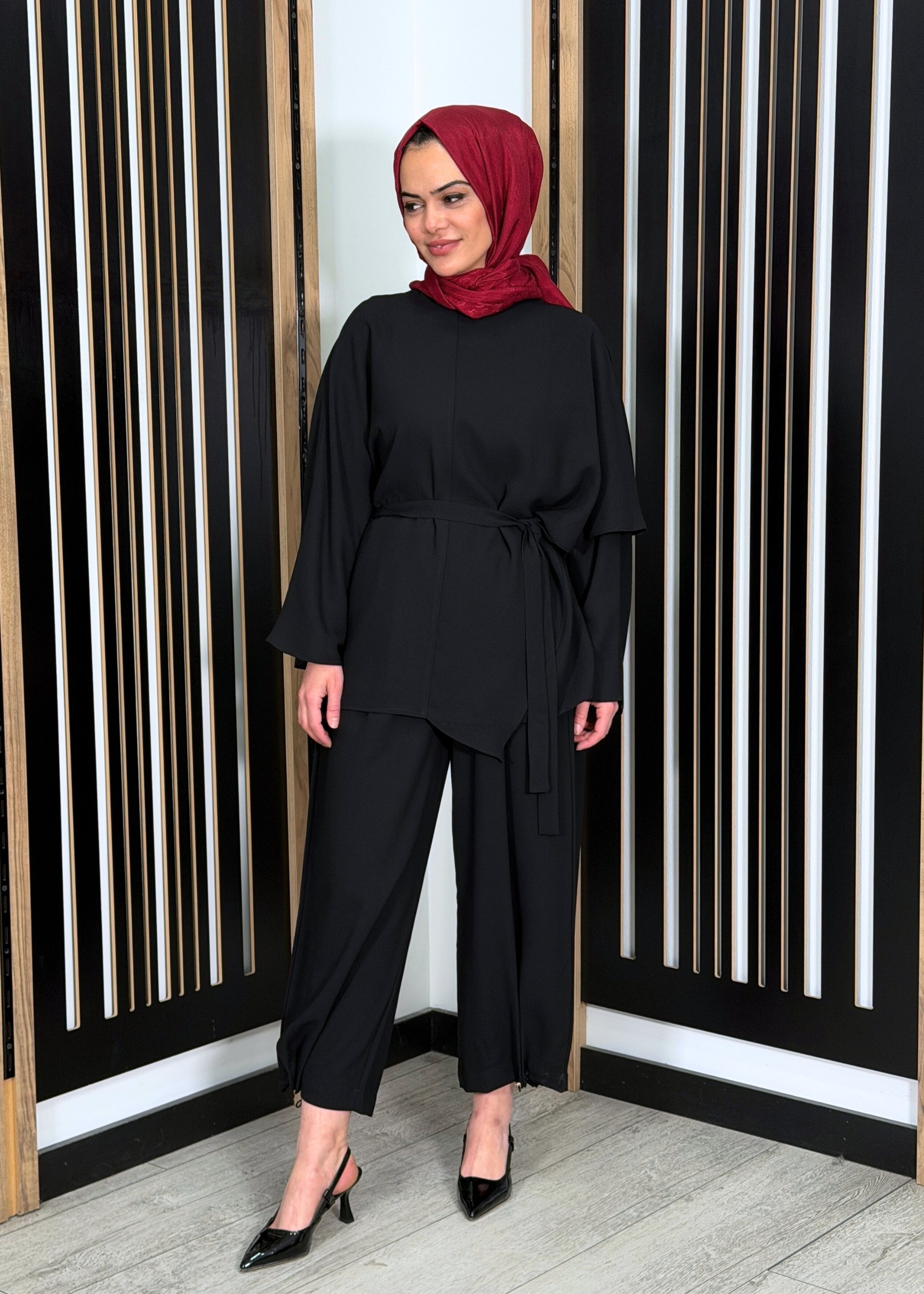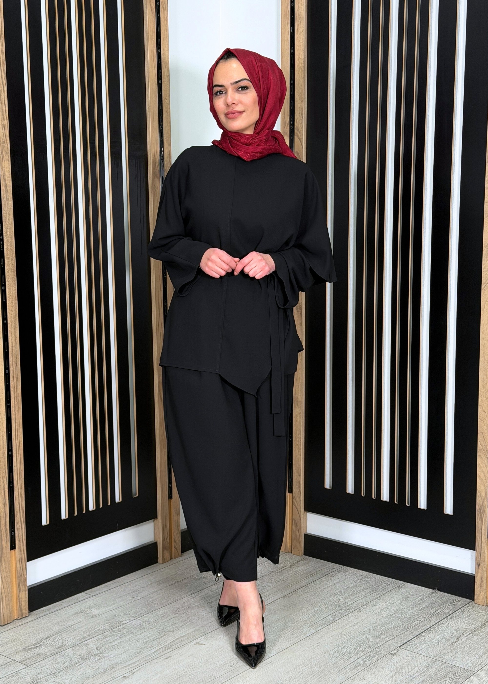 Miss Dalida Evaze Kesim Bileği Lastikli Tunik BLACK