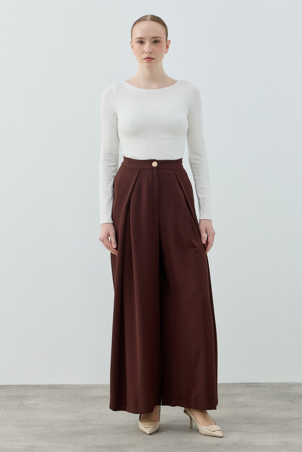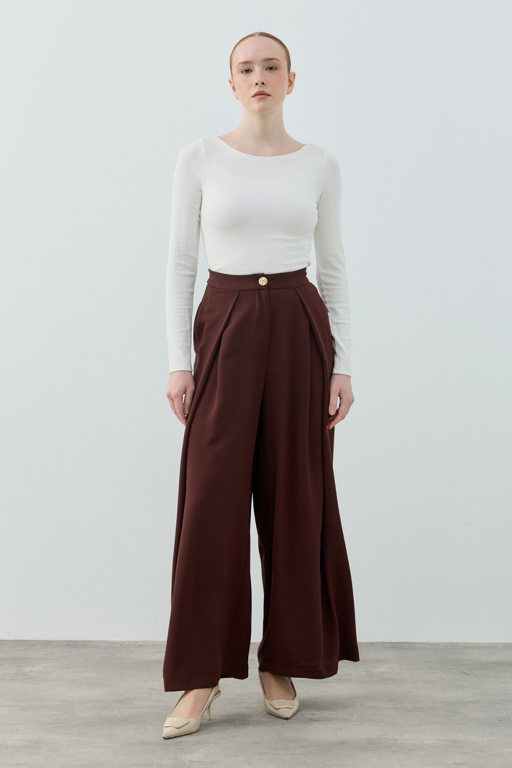 Miss Dalida Bol Paça Basic Cupro Pantolon Cacao
