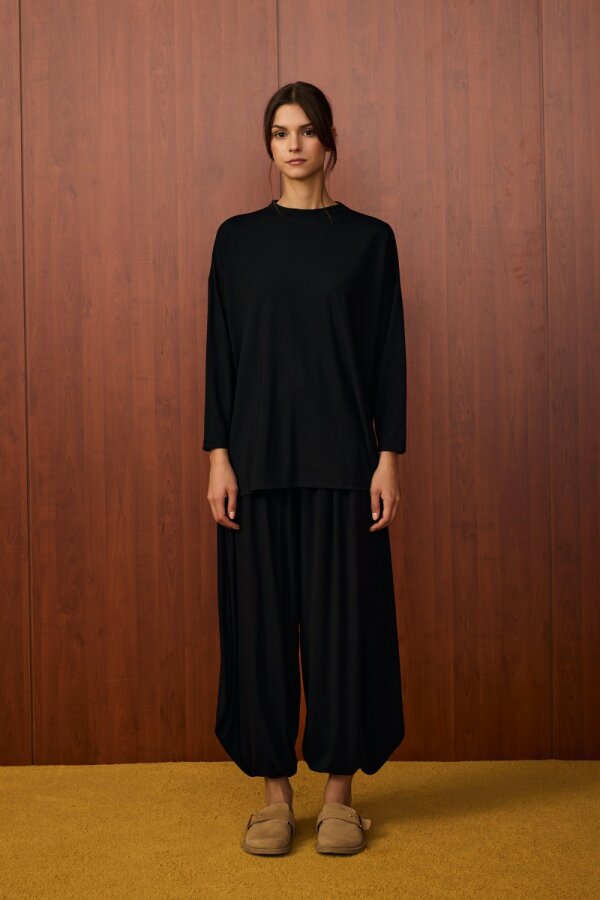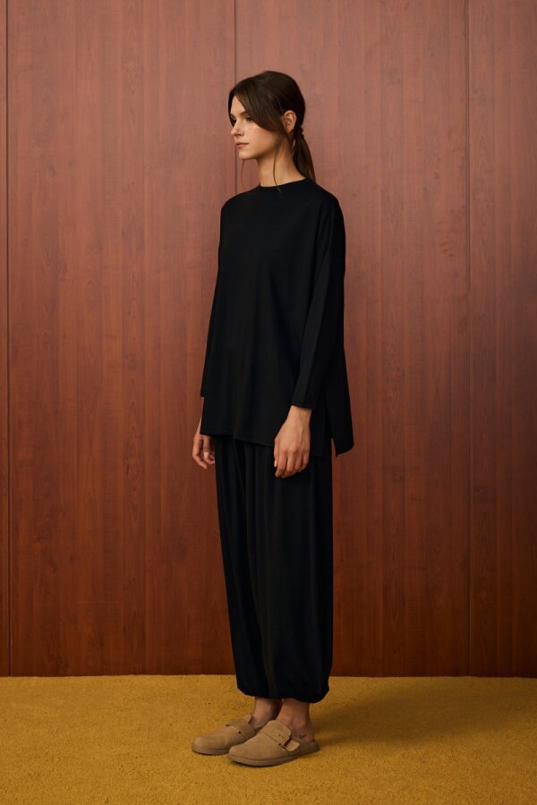 Üst parça rahat kesim, dökümlü yapıdadır.