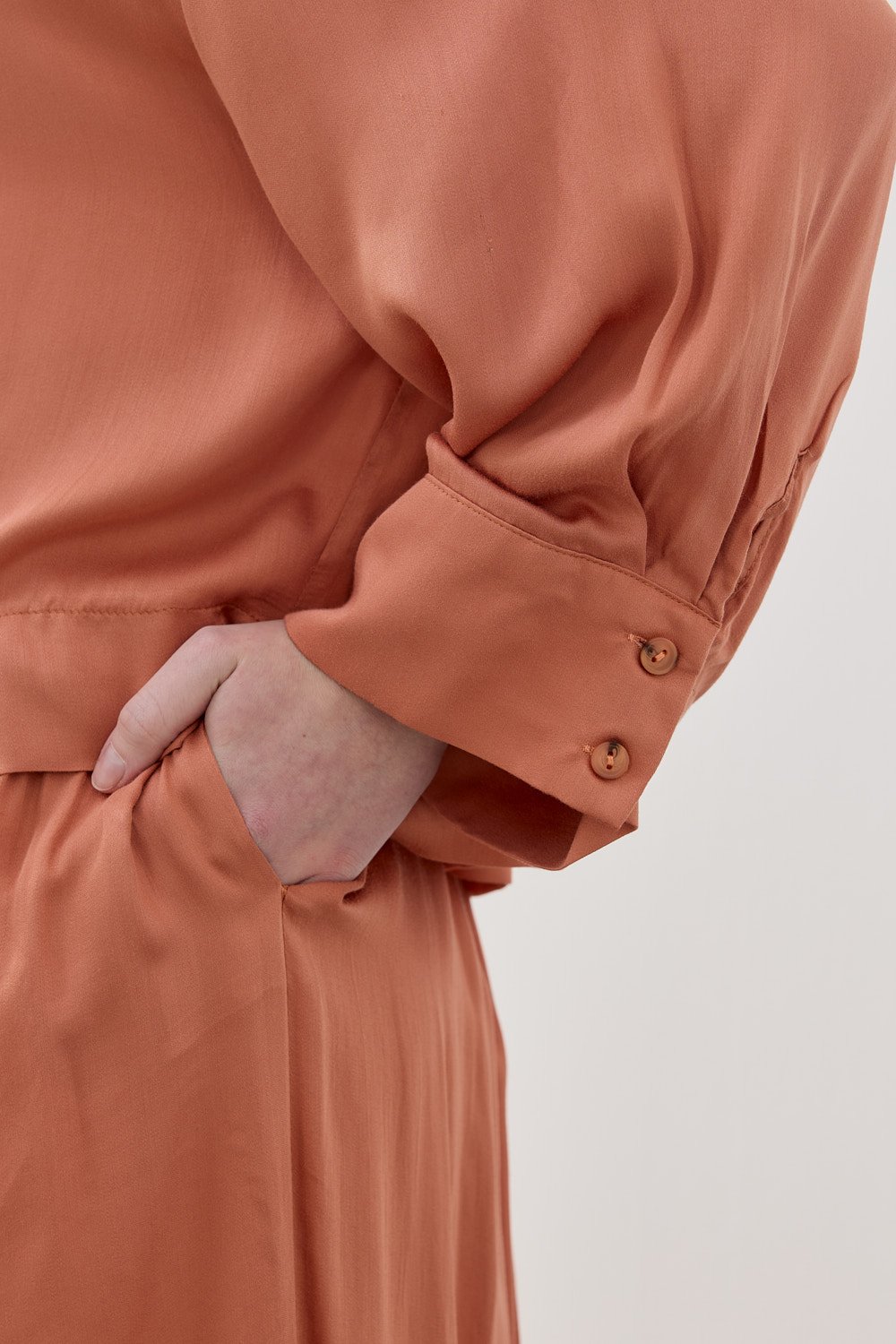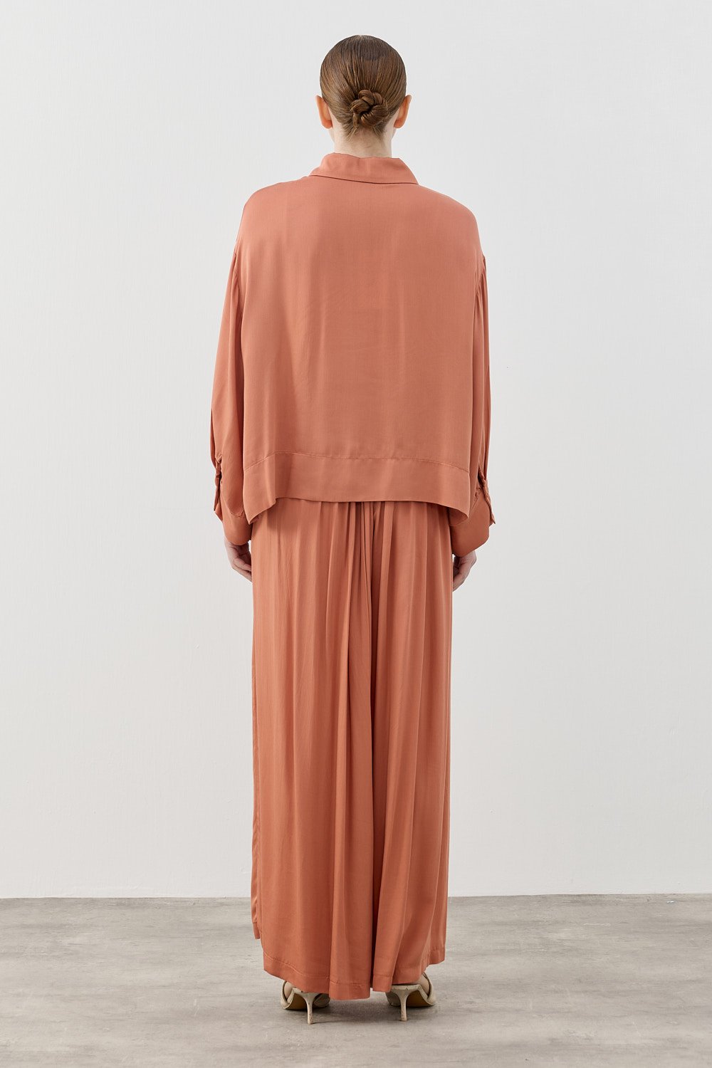 MissWhence Fermuar Detaylı İpek Şalvar Takım KAHVE
