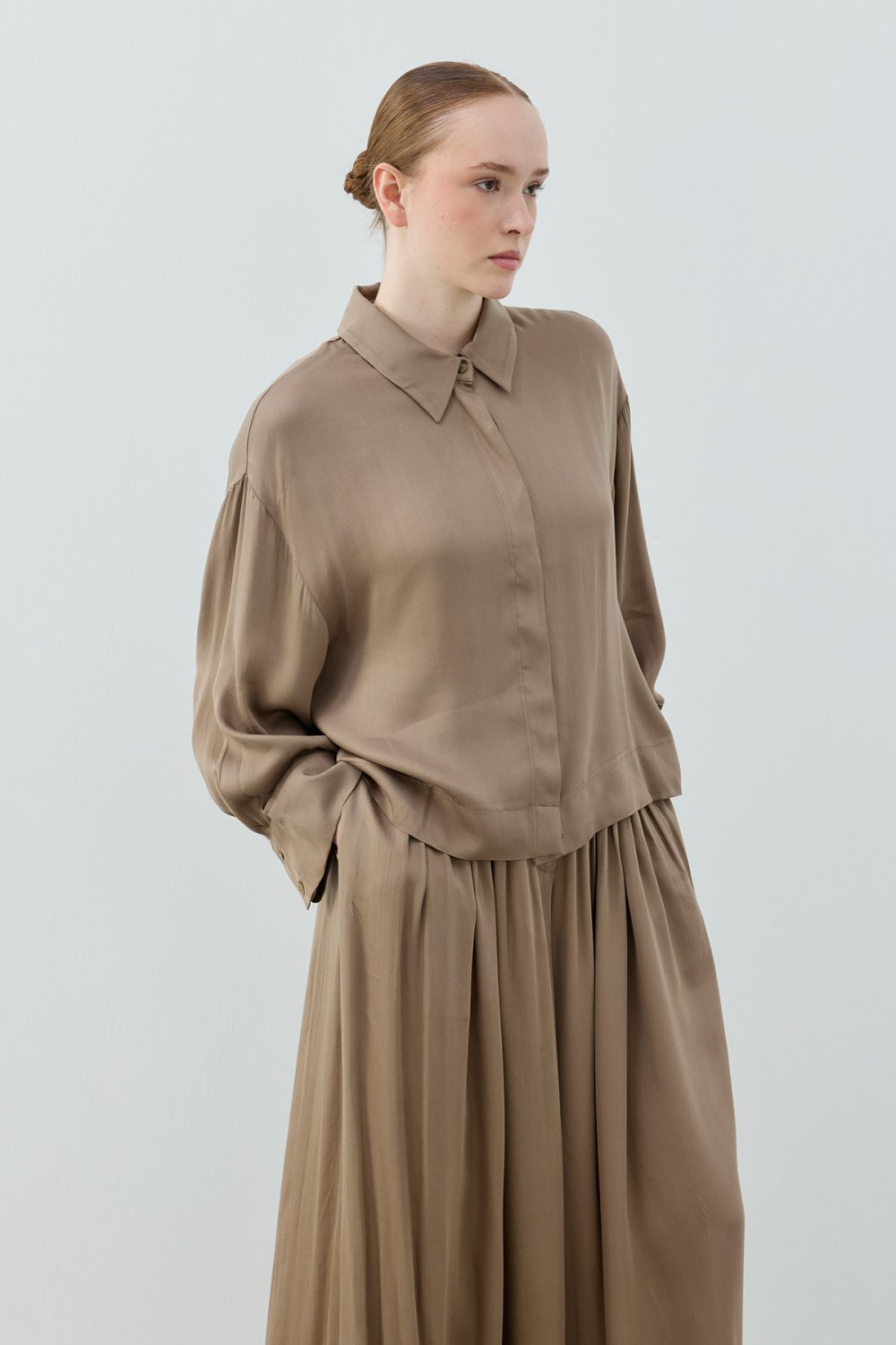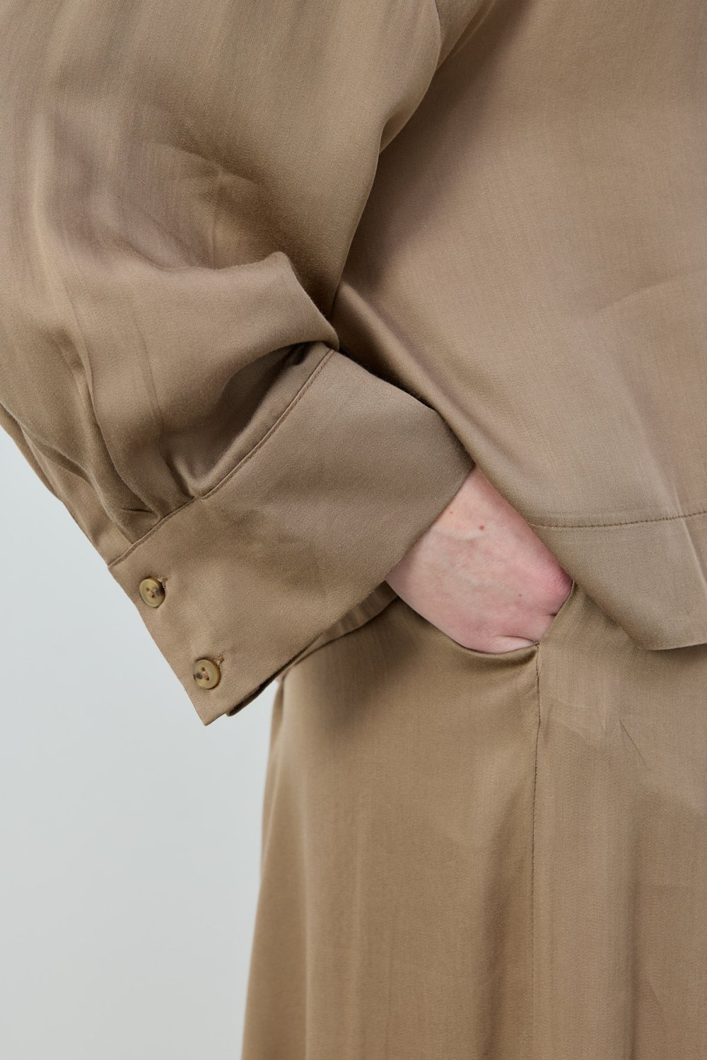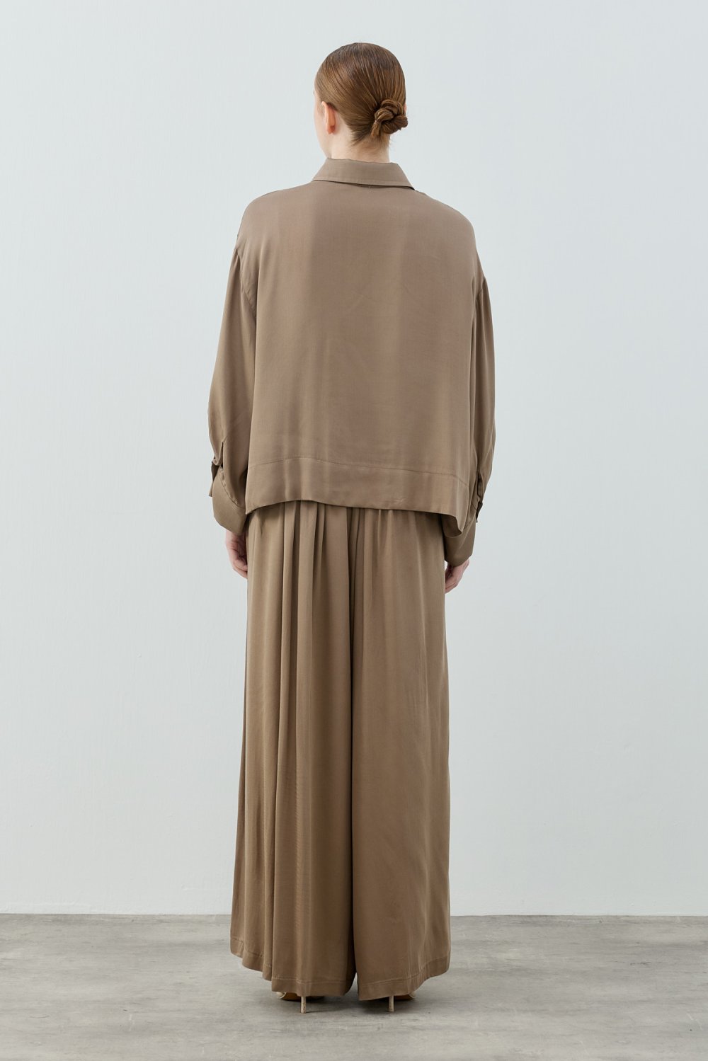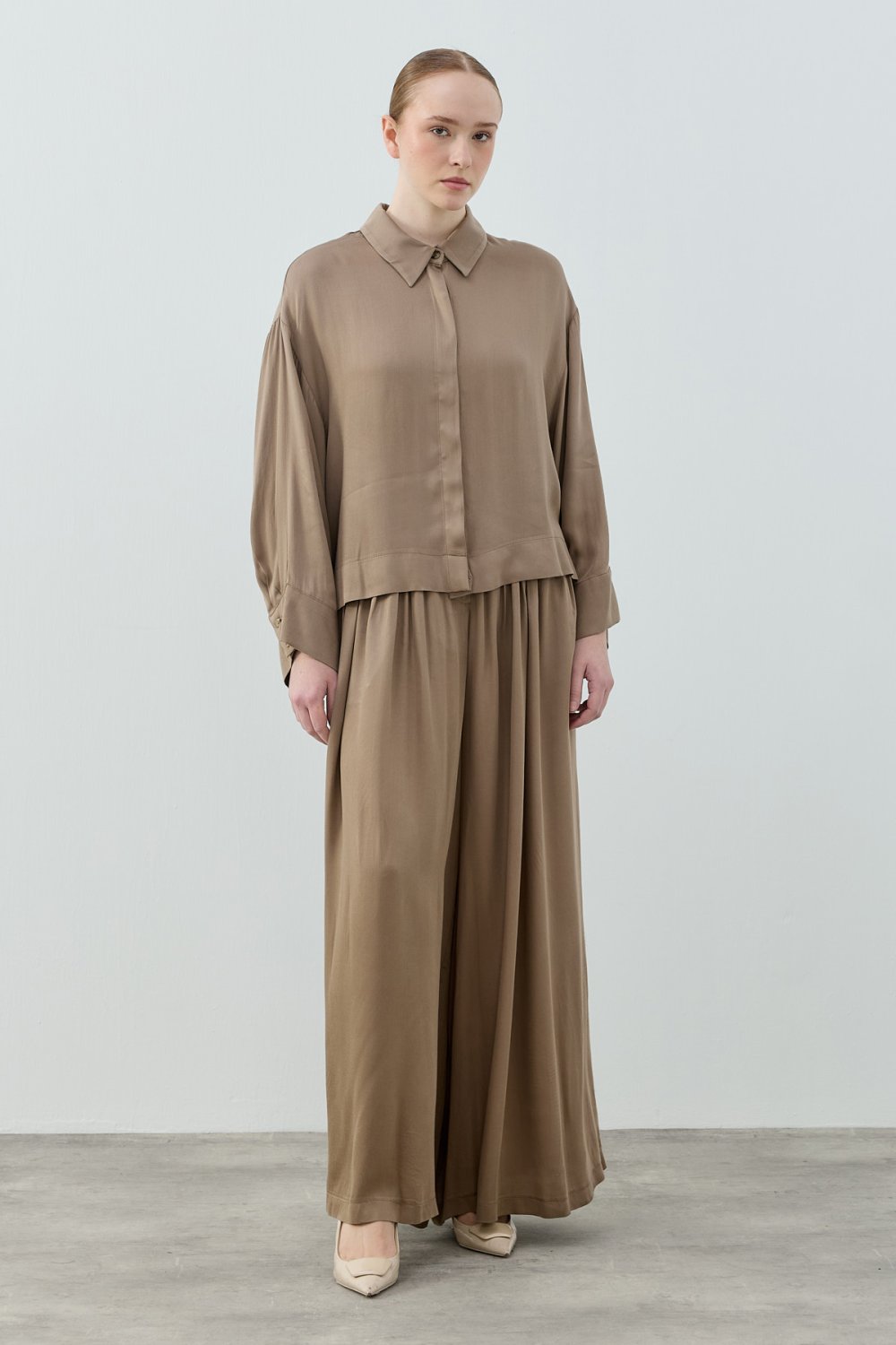 MissWhence Fermuar Detaylı İpek Şalvar Takım KAHVE