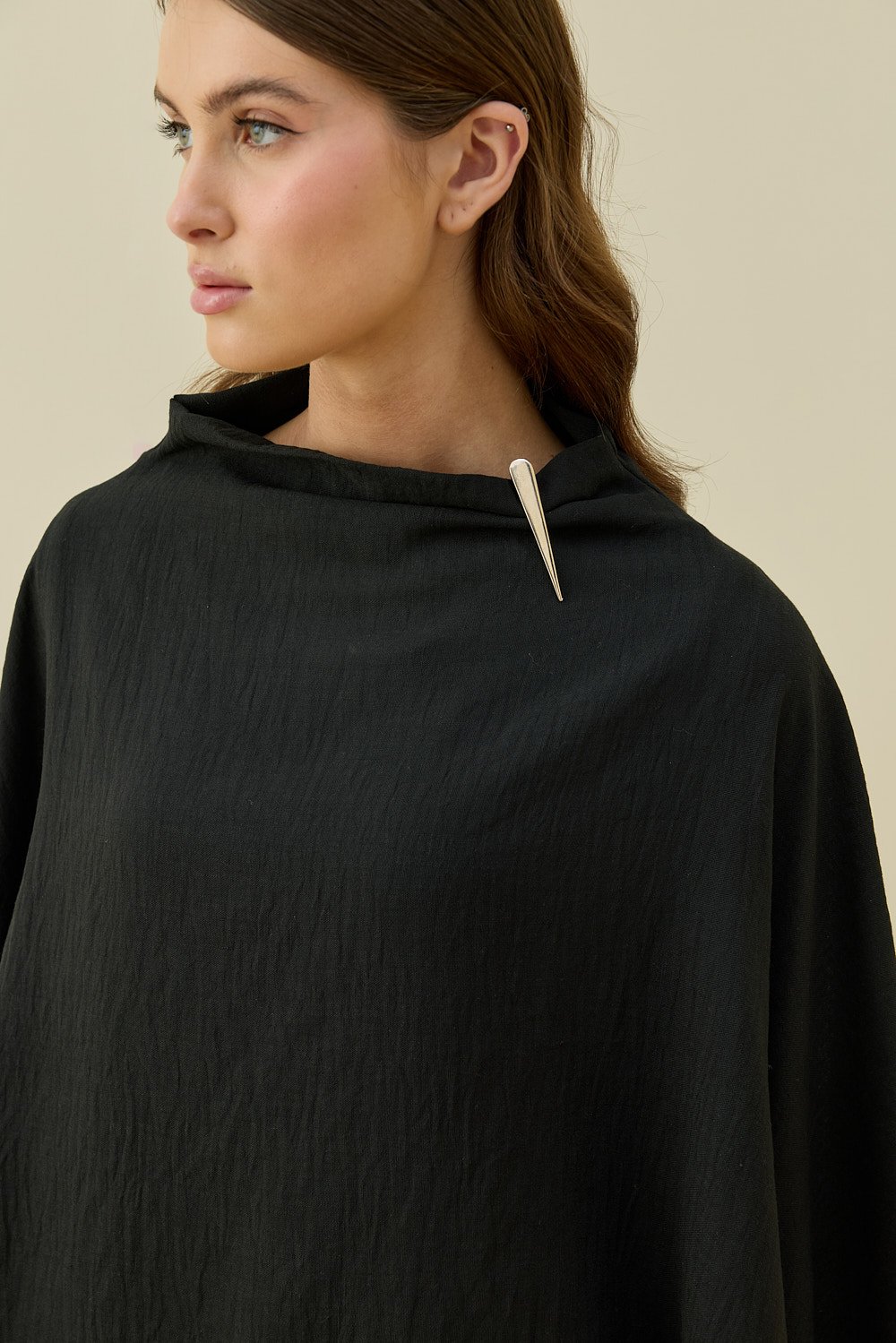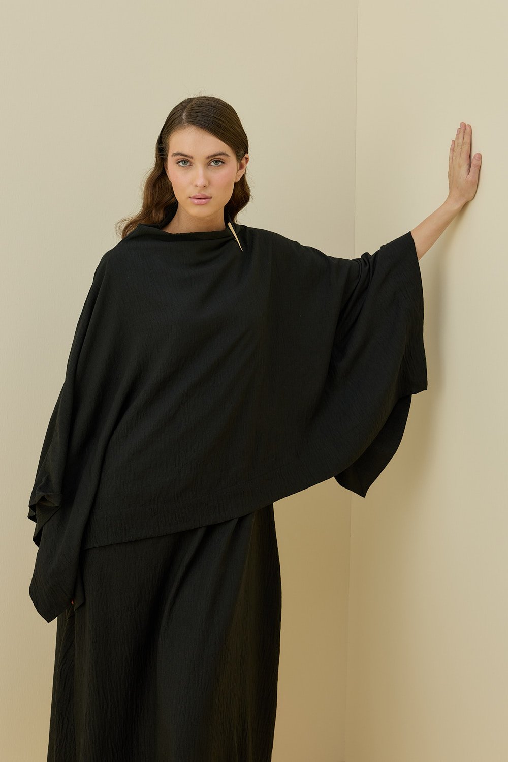 MissWhence Fermuar Detaylı İpek Şalvar Takım SİYAH