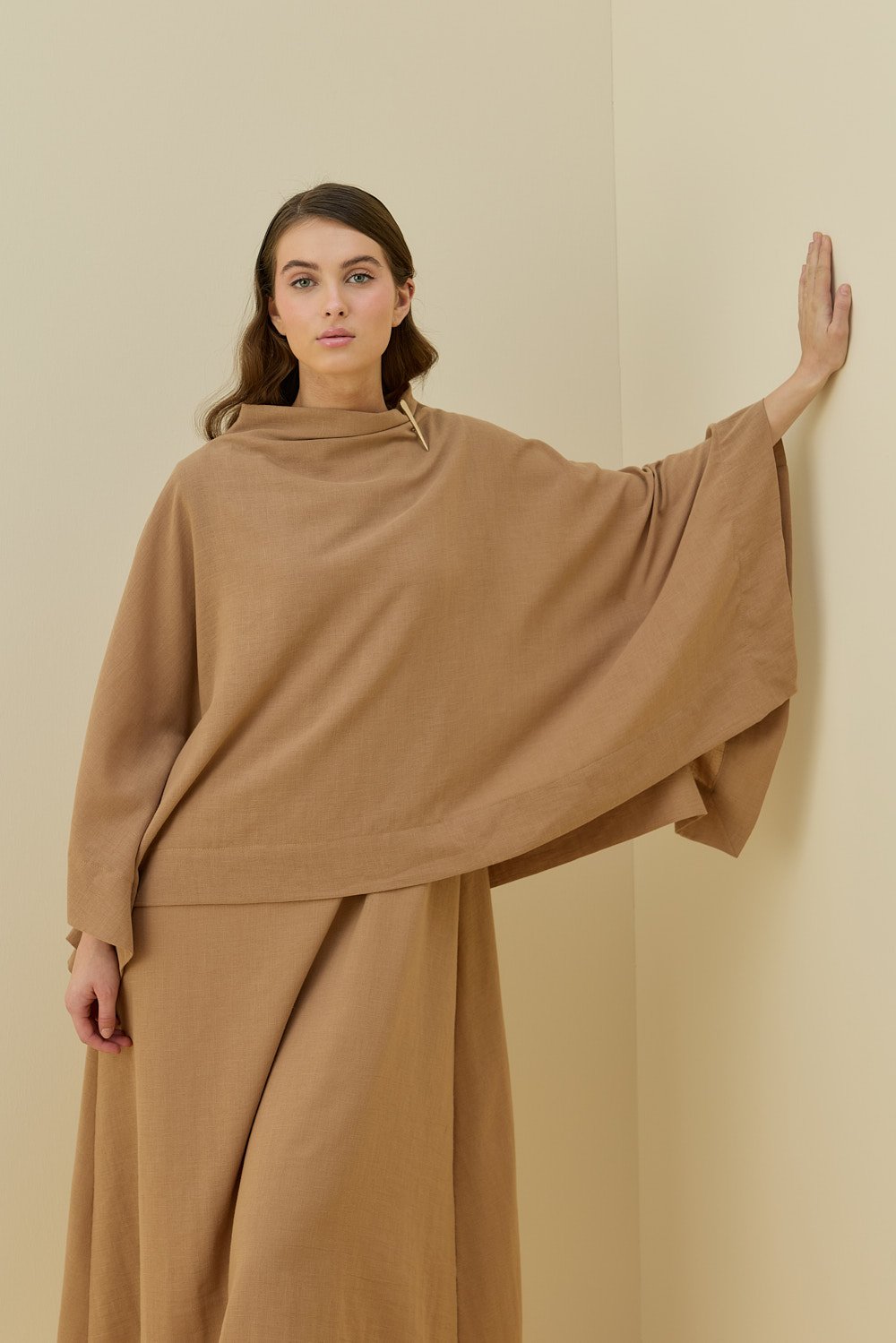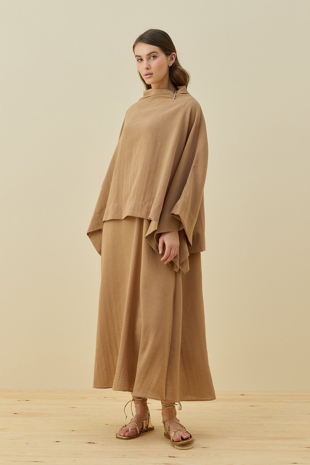 MissWhence Asimetrik Dikişli Etekli Takım KAHVERENGİ