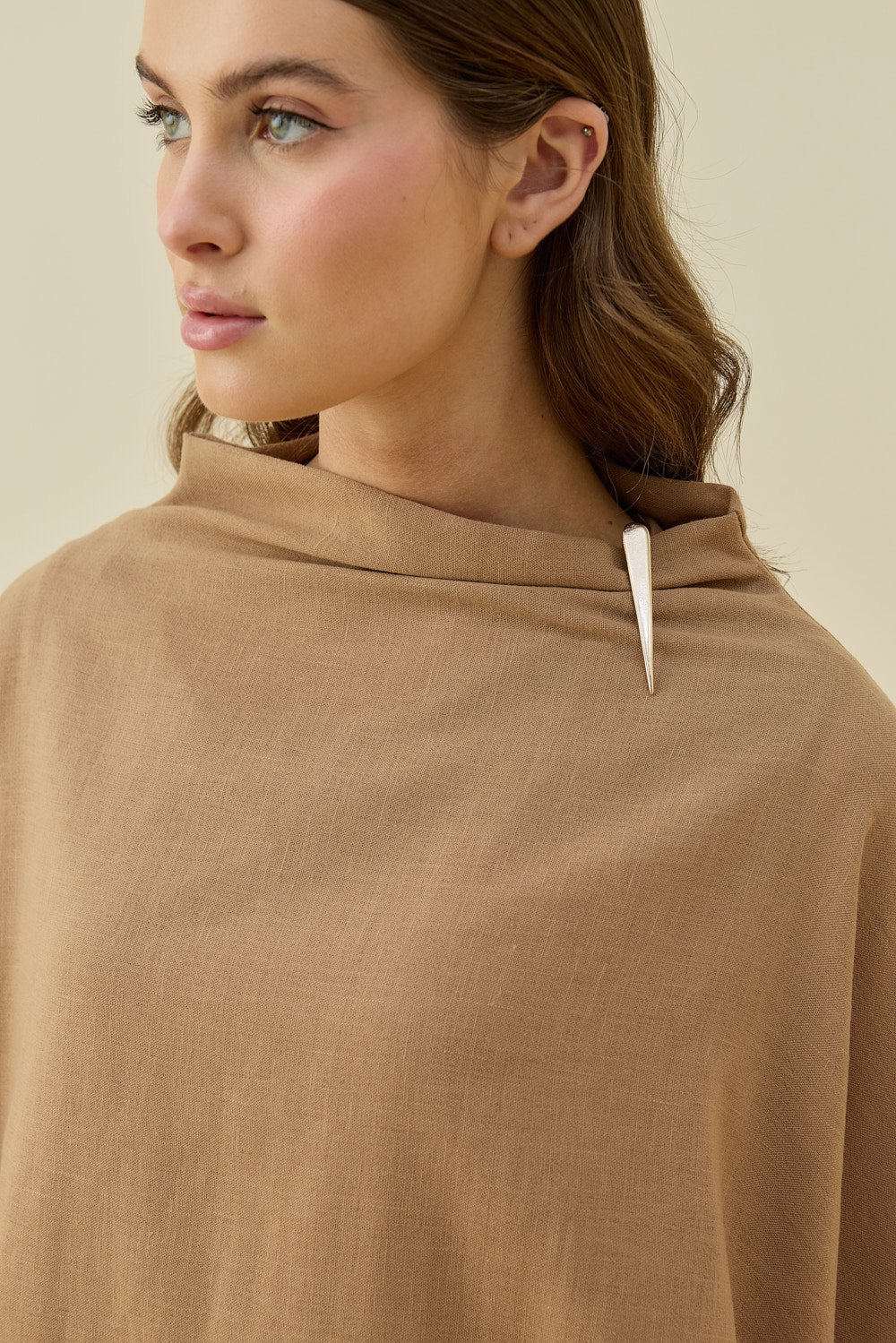 MissWhence Fermuar Detaylı İpek Şalvar Takım KAHVE