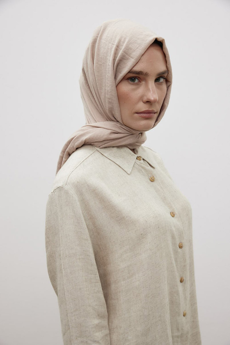 Bu kombin, minimal ve doğal bir şıklık arayanlar için mükemmel bir seçimdir. Hafif ve nefes alabilir kumaş yapısıyla rahatlık sunarken, zarif siyah şal, her kombine sofistike bir dokunuş katar. Bej keten gömlek ise günlük ve özel kullanımlarda zarafeti ve konforu bir araya getirir. Doğal tonları sayesinde her mevsime uyum sağlar ve birçok farklı stil ile kombinlenebilir.
