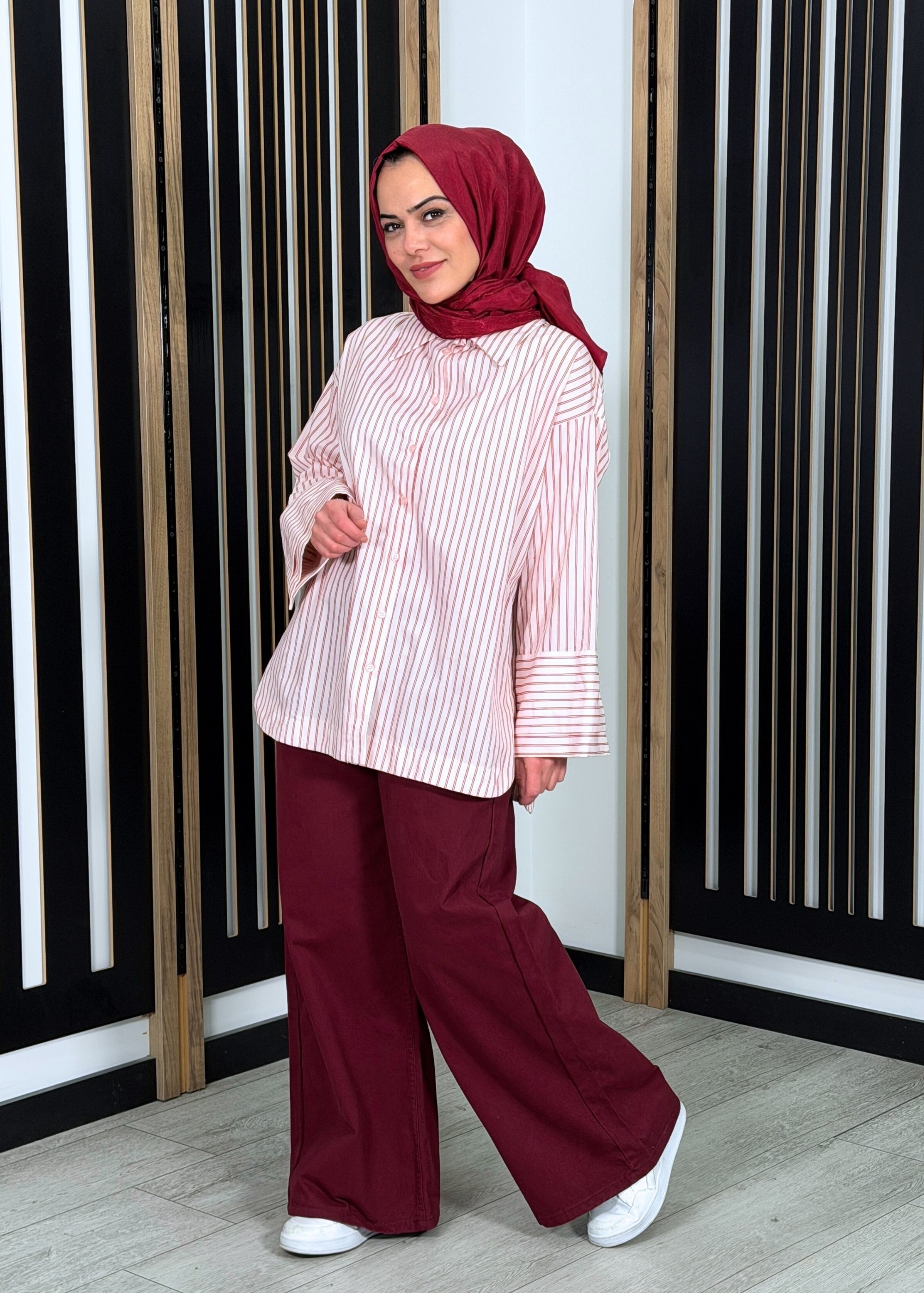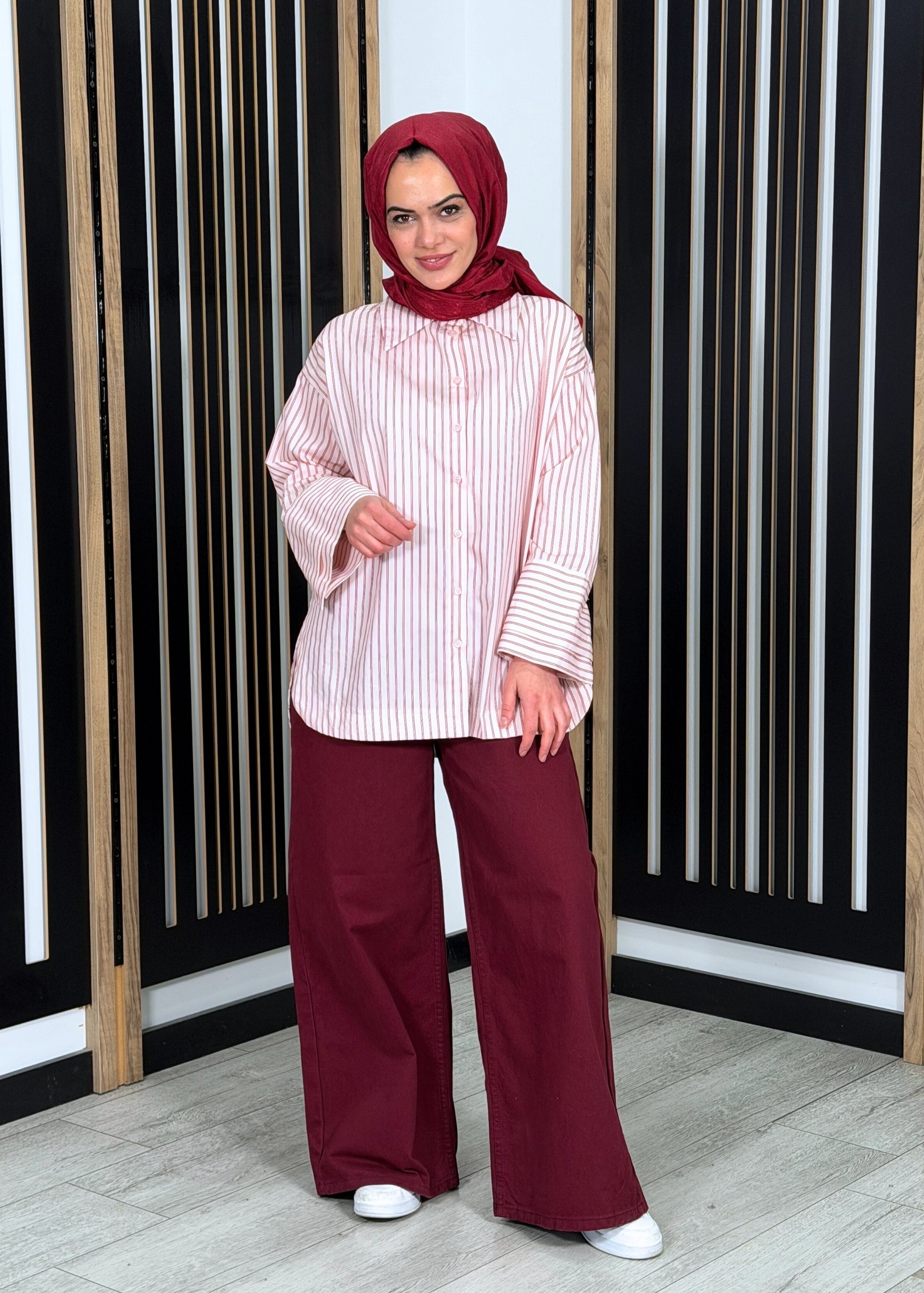 Miss Dalida Cepli Düz Renk Cupro Pantolon Cherry