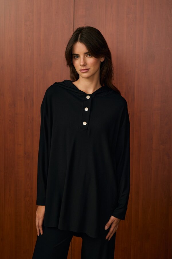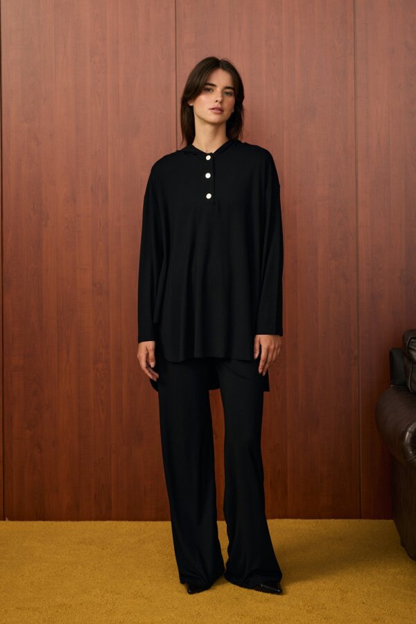 Detaylar: Kapüşonlu tunik, gold düğme detayları, lastikli bel pantolon