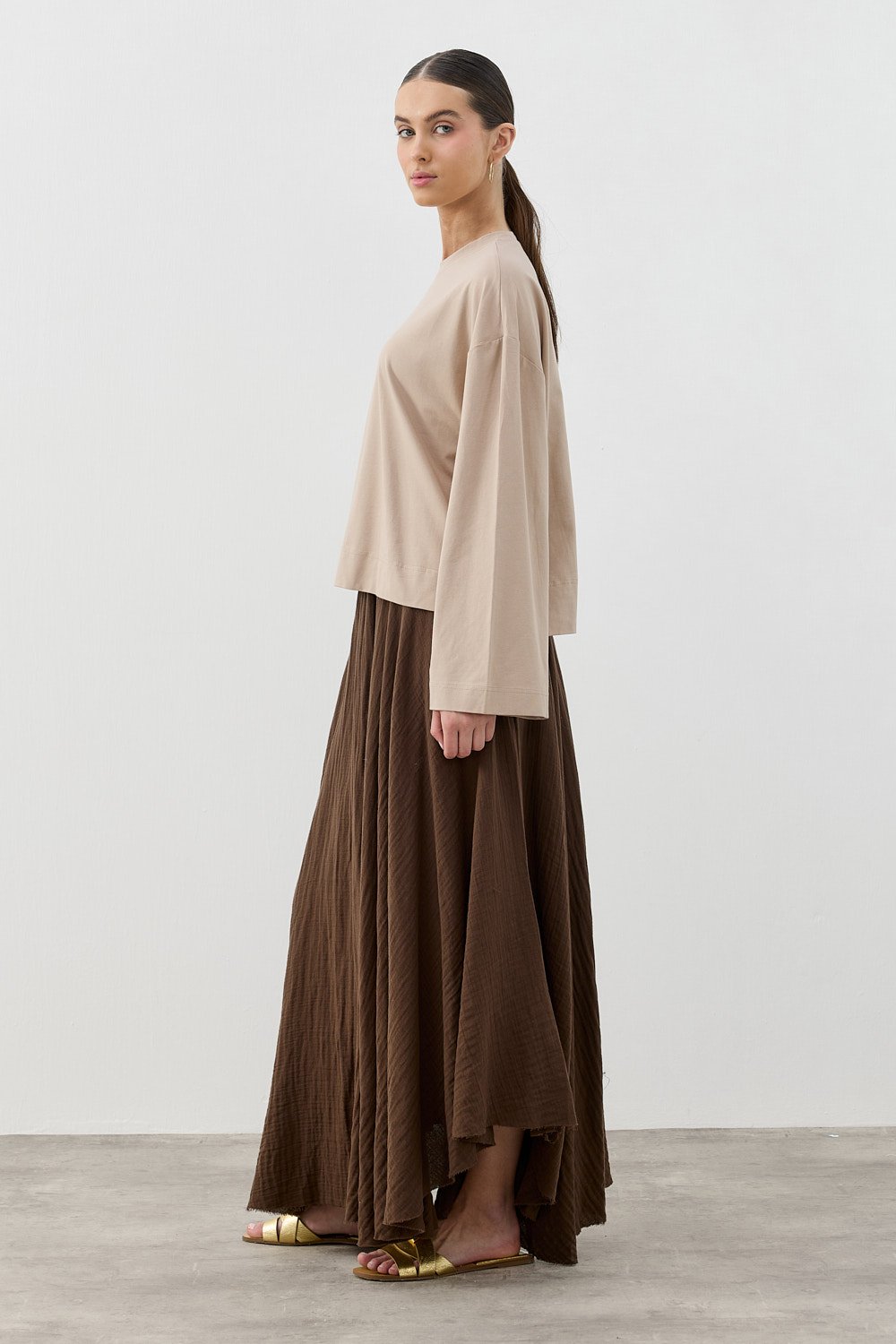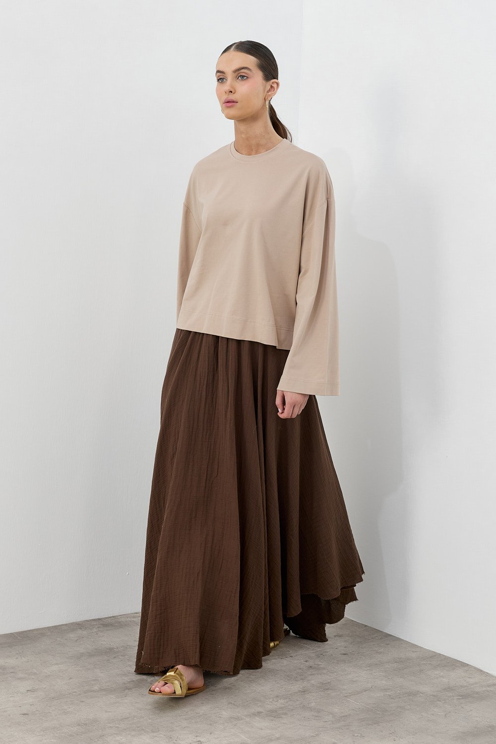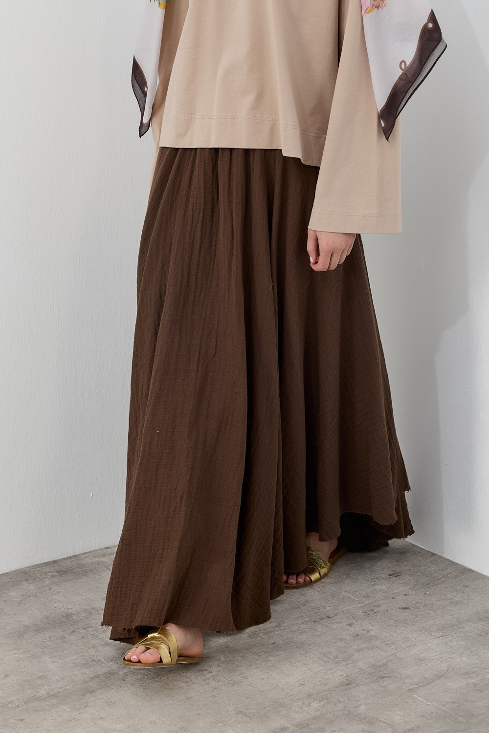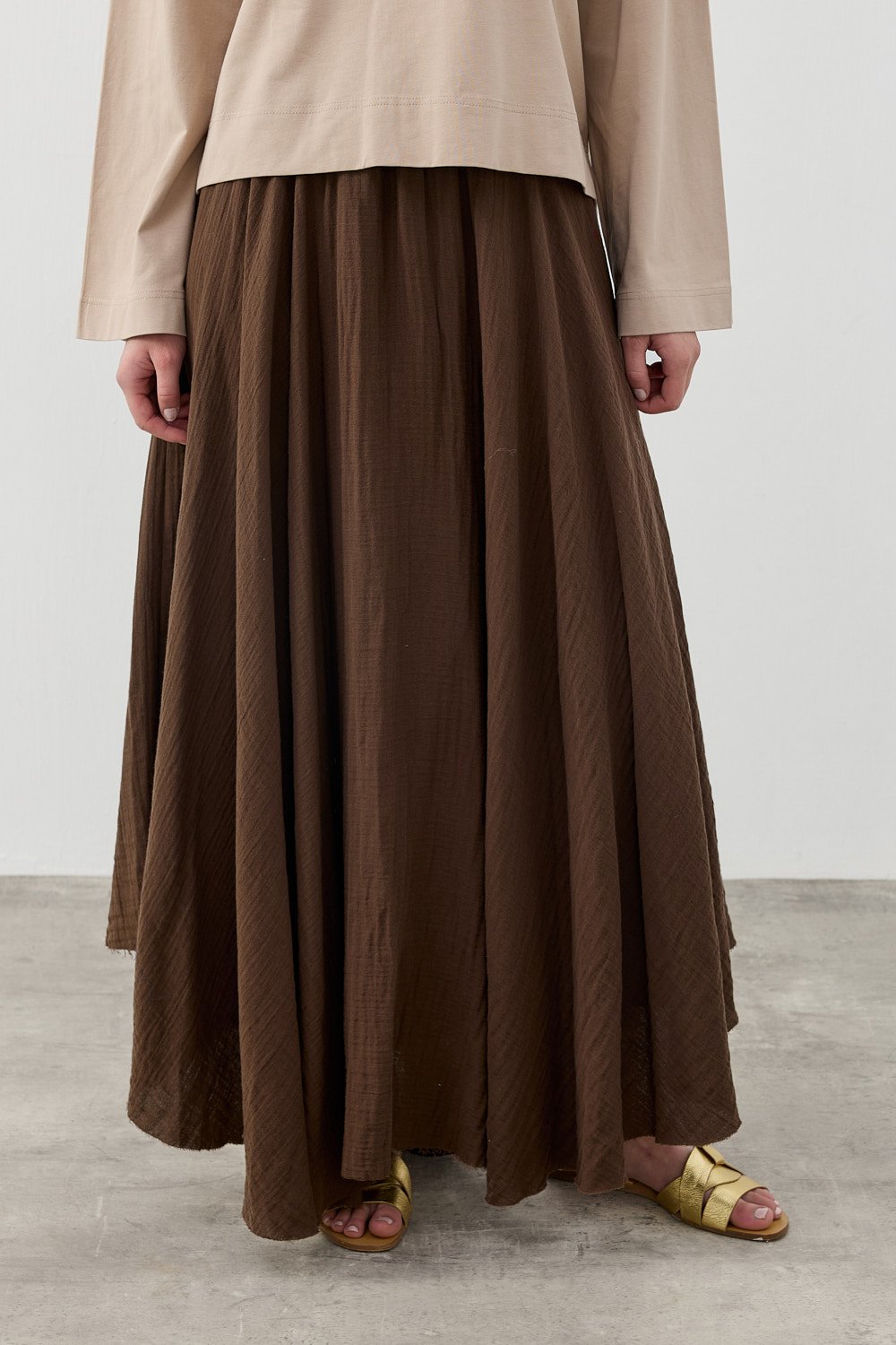 MissWhence Asimetrik Dikişli Etekli Takım KAHVERENGİ